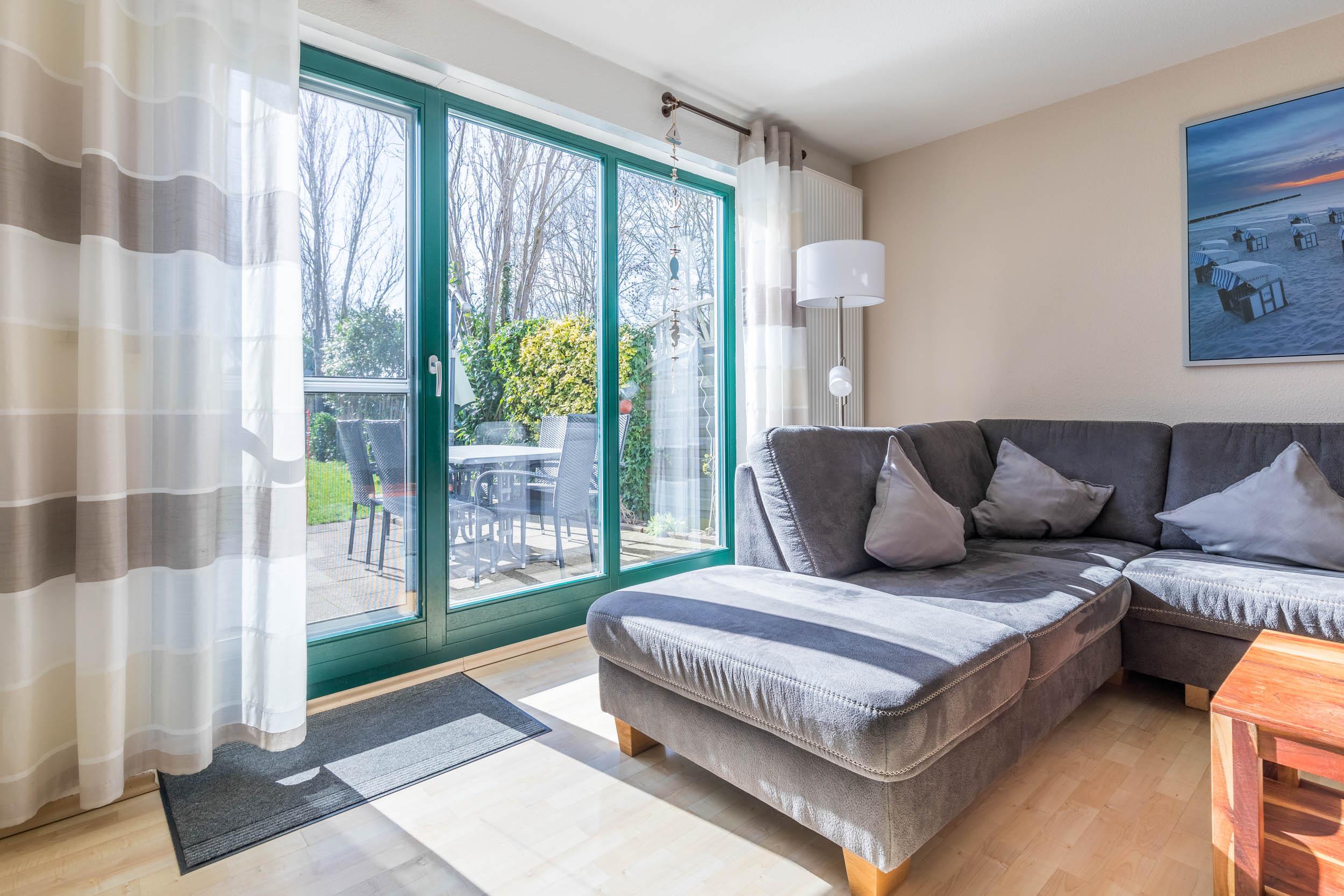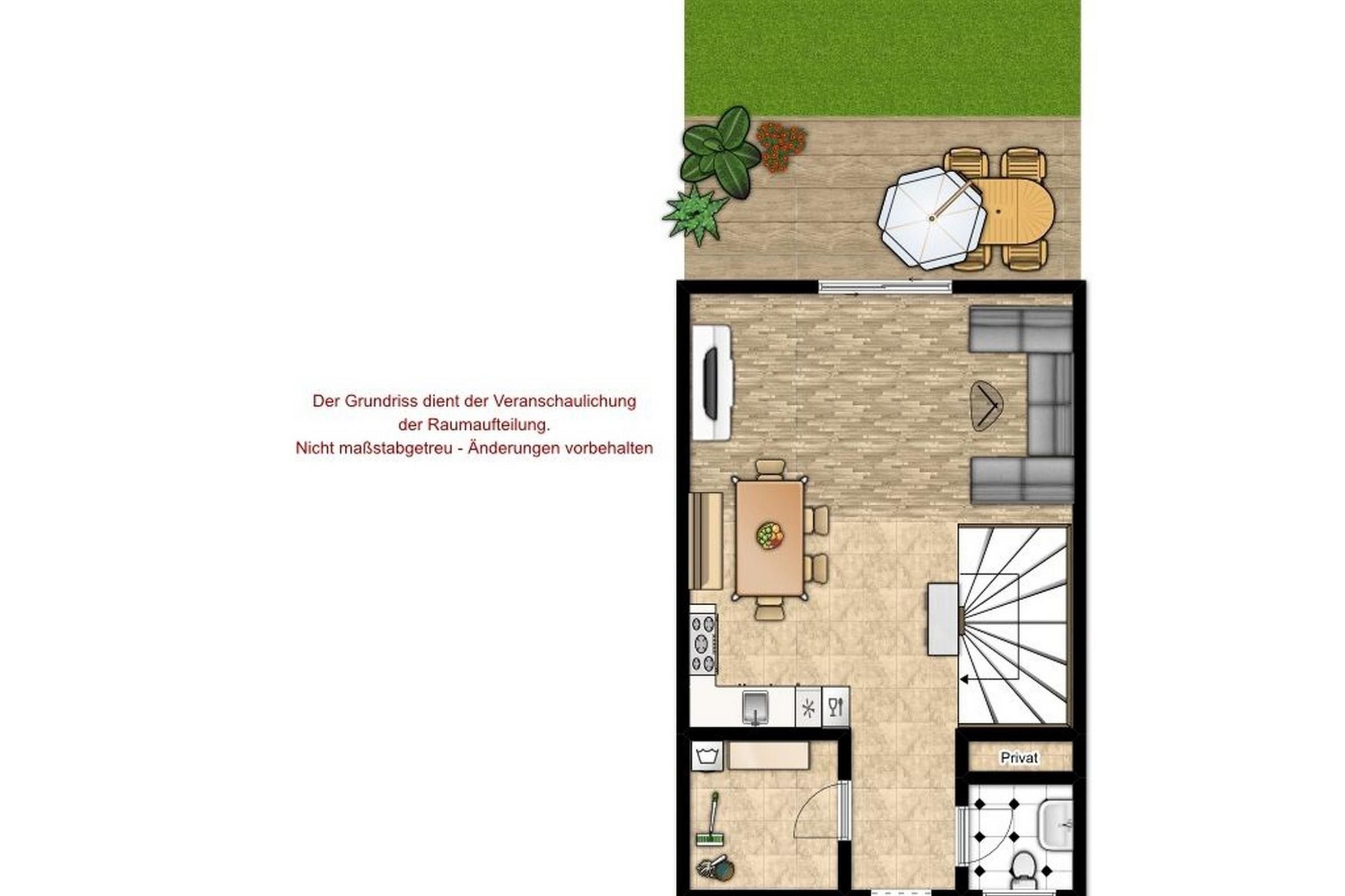Vom Wohnbereich aus gelangen Sie direkt in den eingezäunten Garten mit möblierter Südwest-Terrasse. Hier können Sie, liebe Gäste, entspannen, die Kinder spielen oder einen gemeinsamen Grillabend verbringen.