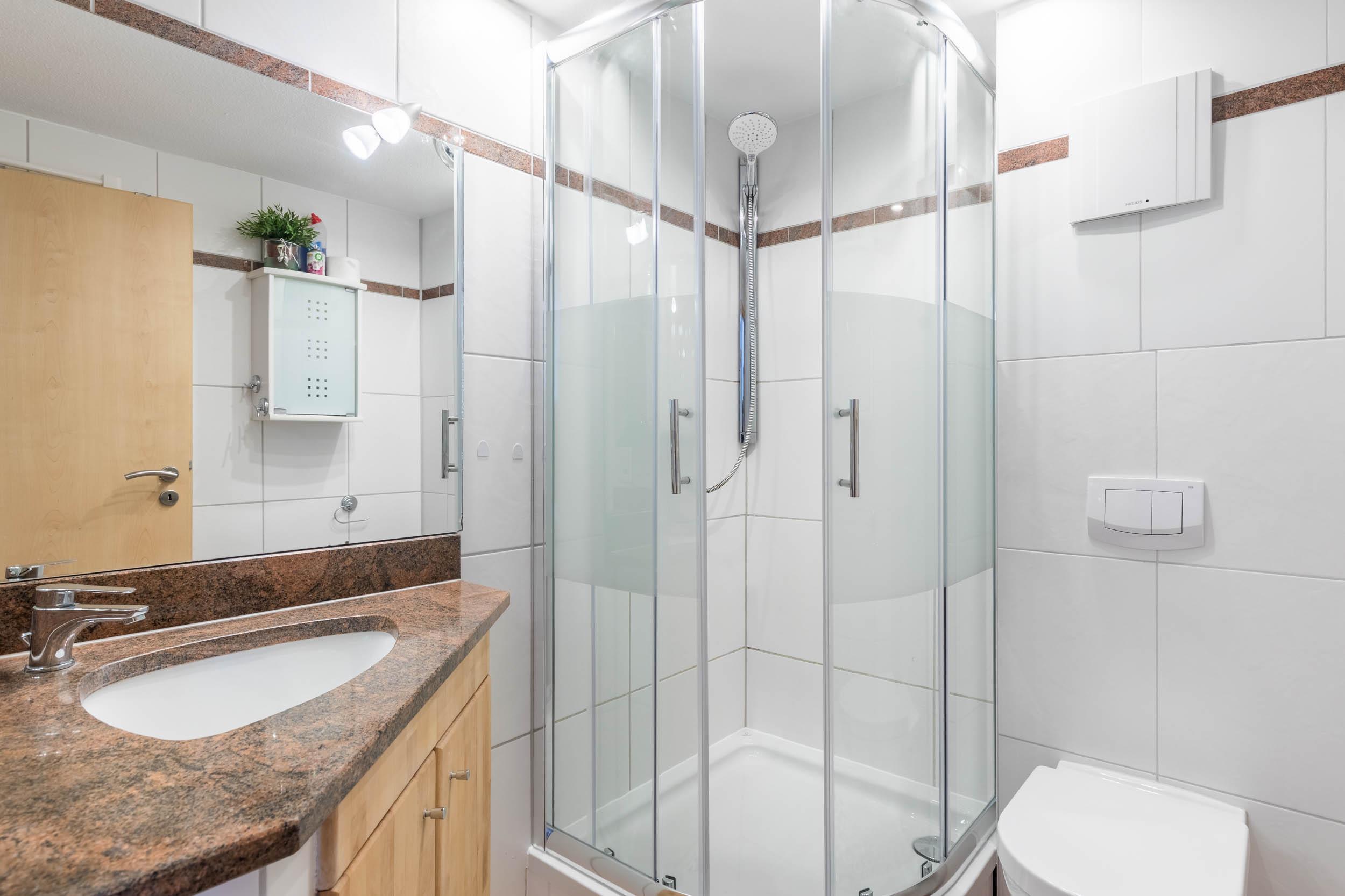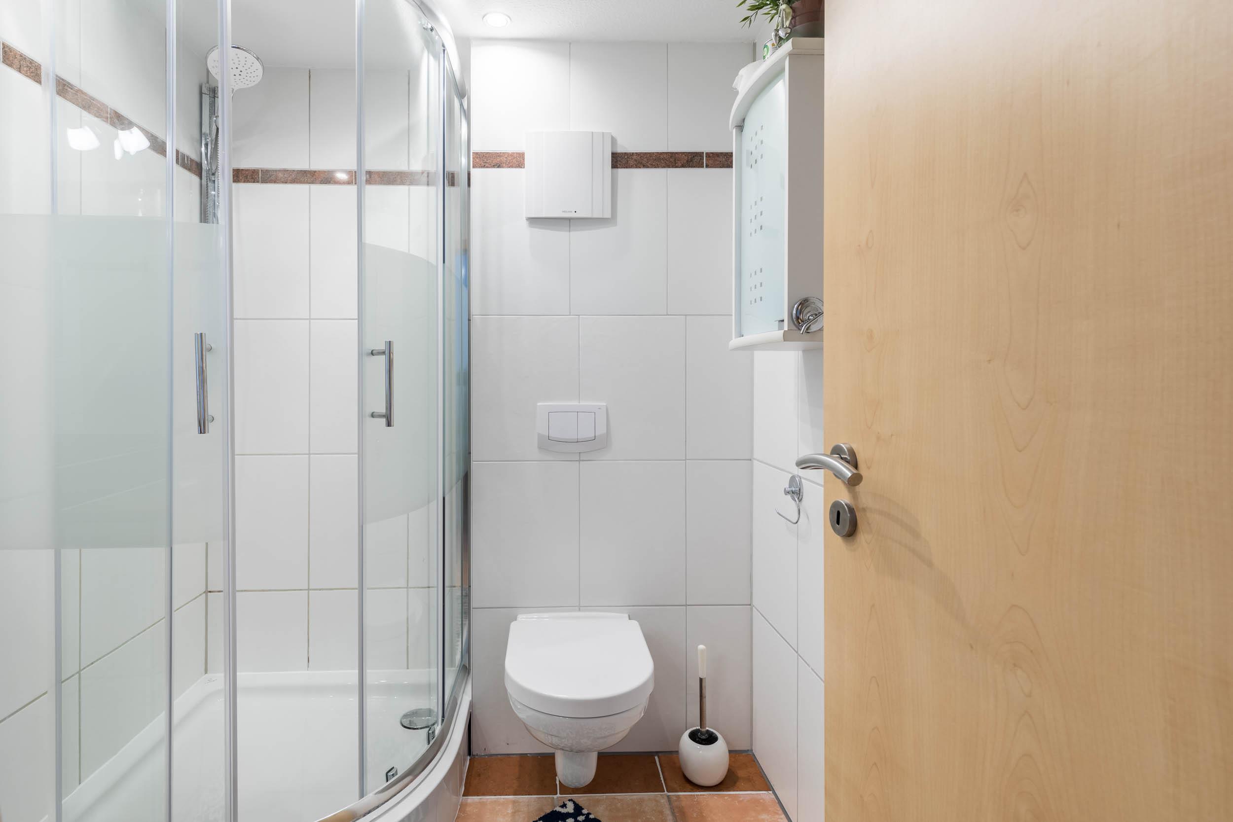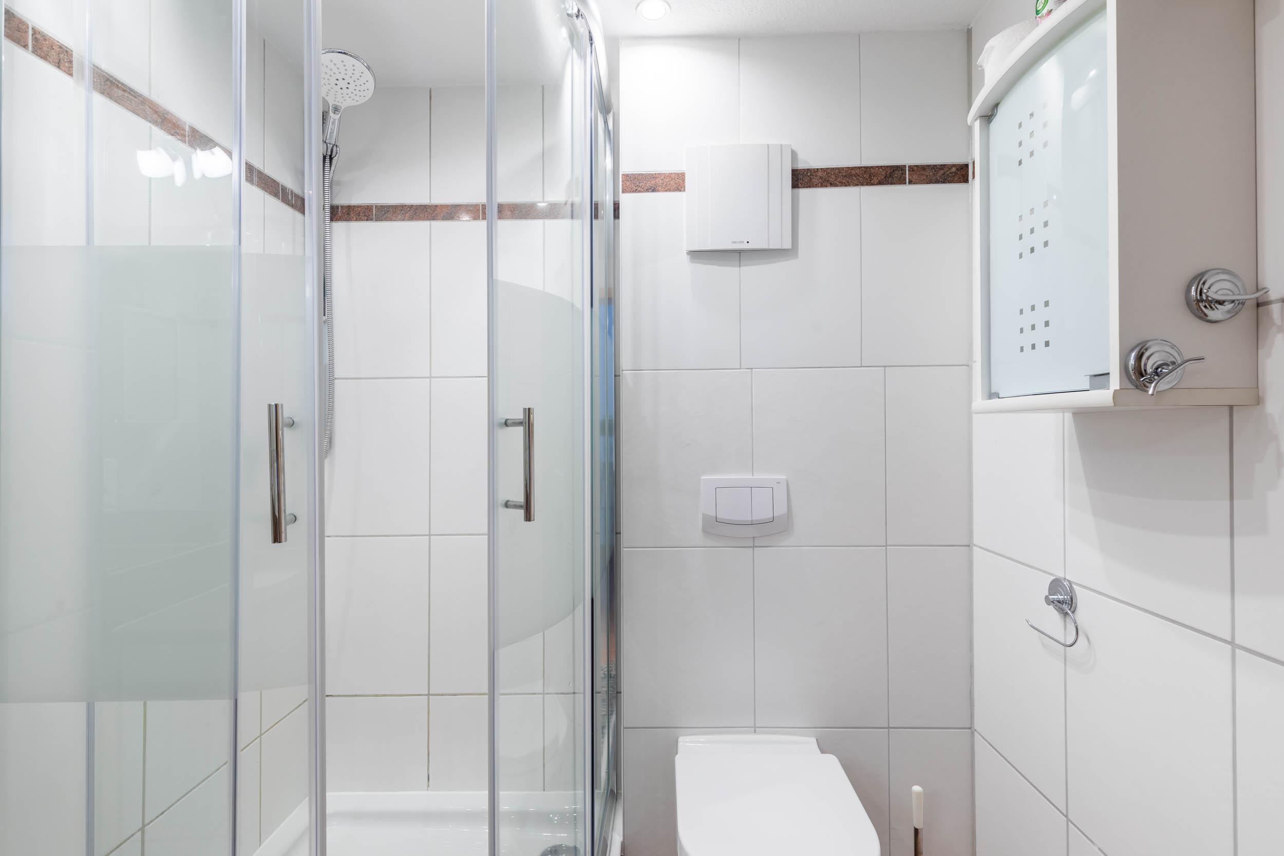 Im Eingangsbereich werden Sie von einer modernen, offenen Küchenzeile empfangen. Hier finden Sie neben einem Herd mit Backofen einen Kühlschrank mit Gefrierfach, eine Spülmaschine, einen Toaster, einen Wasserkocher und eine Kaffeemaschine. An der separaten Essecke können Sie gemütlich zusammen speisen.