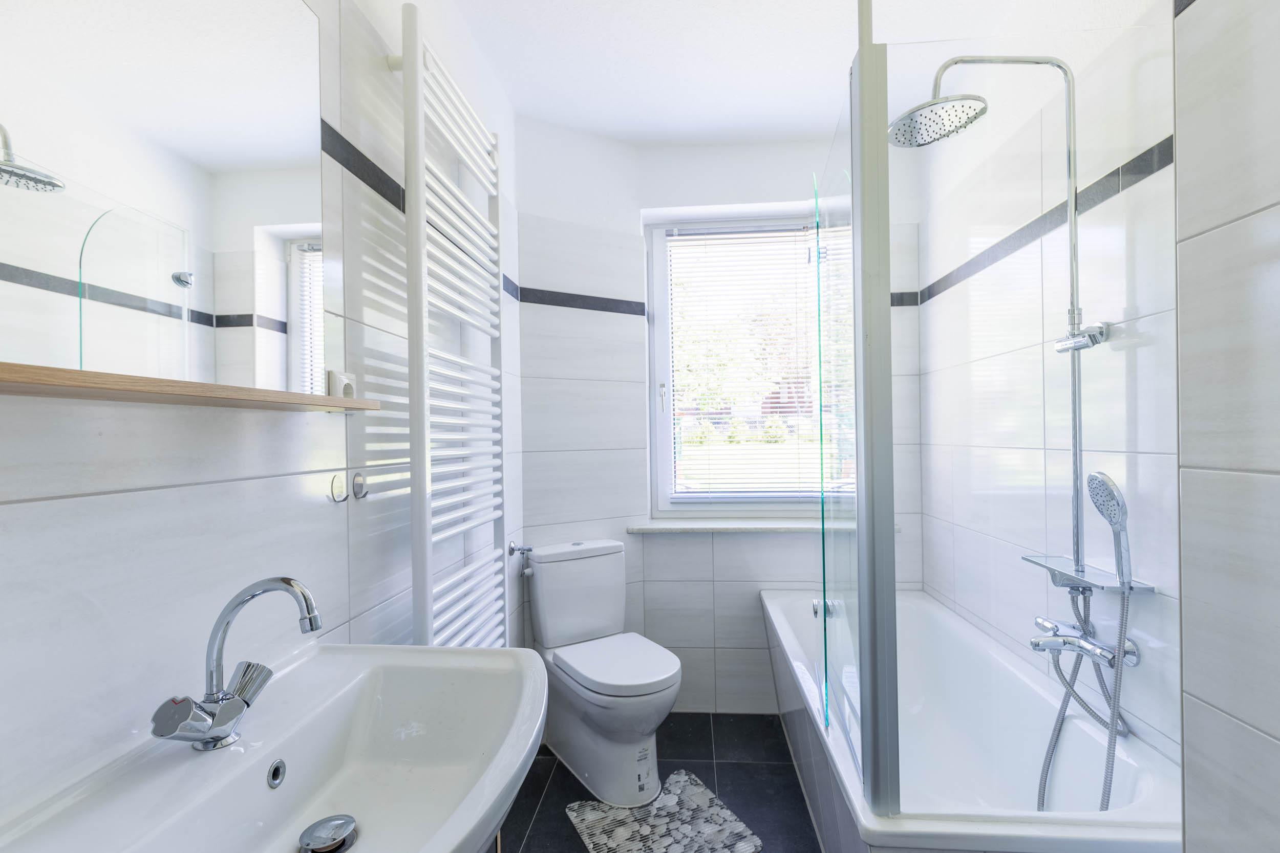 Das Badezimmer ist mit einer Badewanne mit integrierter Duschvorrichtung sowie WC ausgestattet.