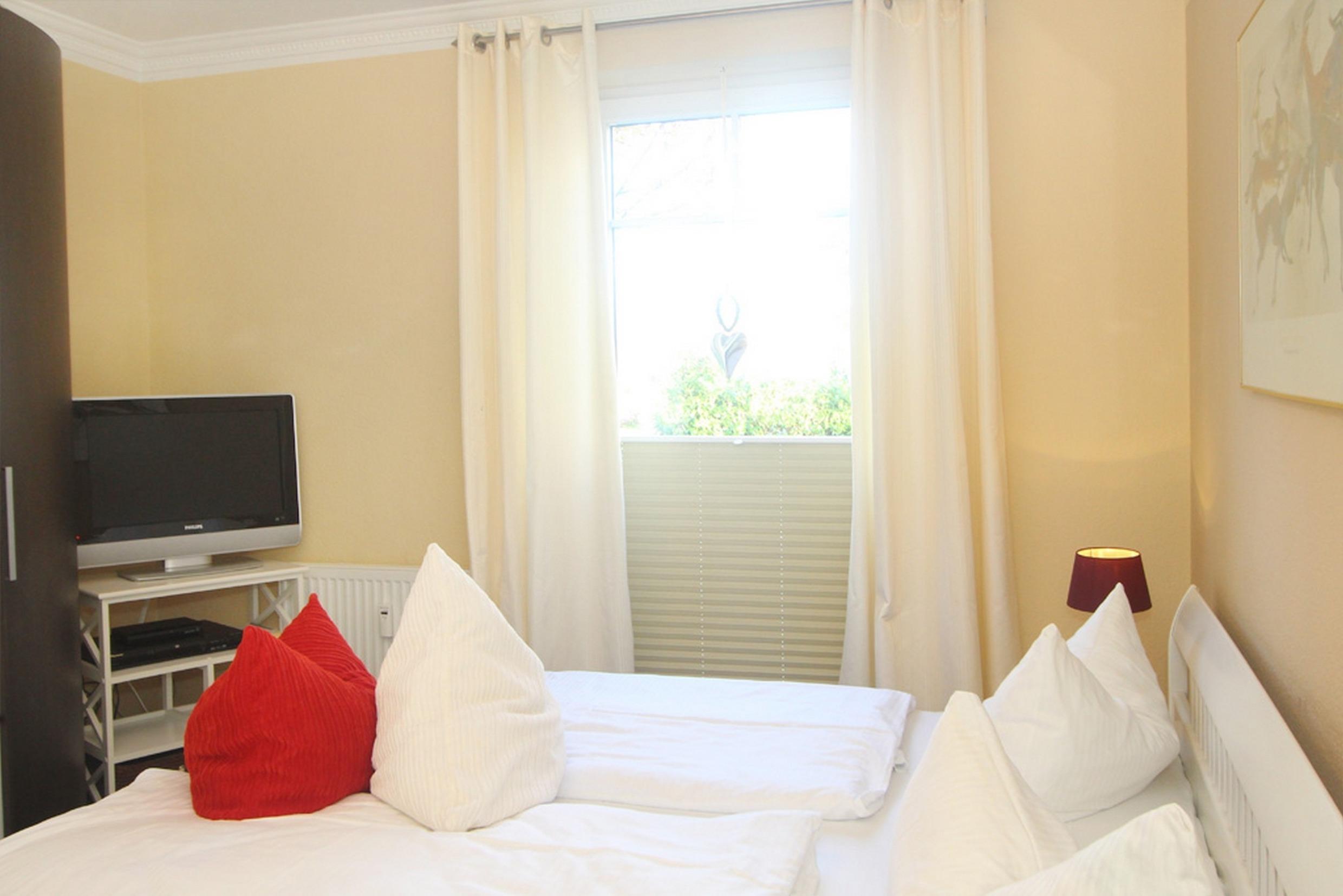 Ein Schlafzimmer bietet ein Doppelbett (180x200cm), SAT-TV (Flatscreen) + DVD-Player und einen großen Kleiderschrank für Ihre Urlaubsgarderobe. Im zweiten Schlafzimmer, in dem sich eine ausziehbare Schlafcouch für 1-2 Personen (ideal für 1 Erwachsenen oder 2 Kinder, Maße ausgezogen 140x200cm) befindet, bietet ebenfalls SAT-TV (Flatscreen) + DVD-Player und dazu eine Kommode als Ablage.