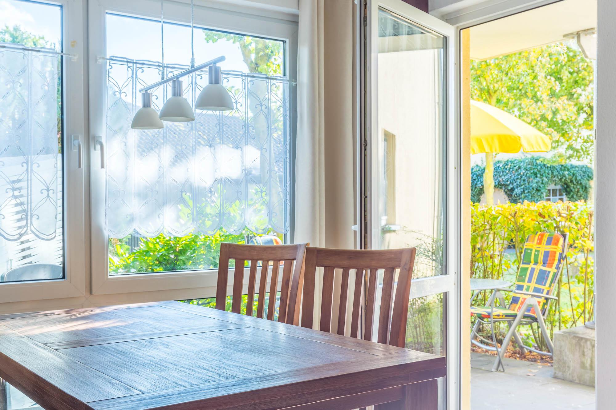 Zu den vielen Vorzügen gehört eine möblierte Eckterrasse (Richtung Osten und Süden) hier können Sie die frische Ostseeluft genießen.