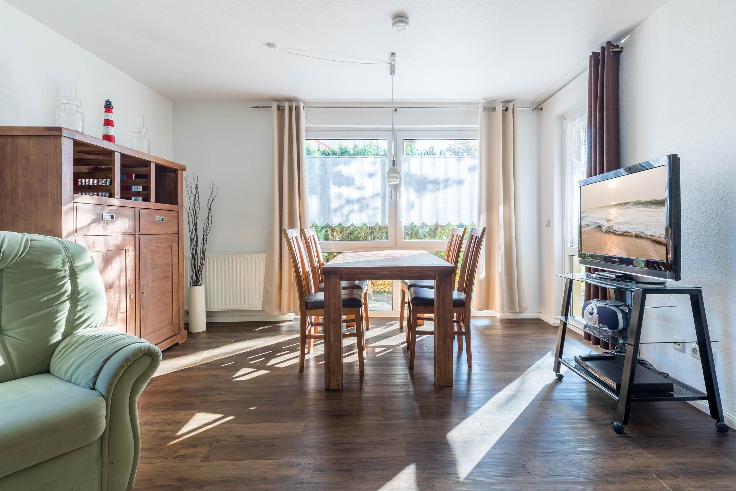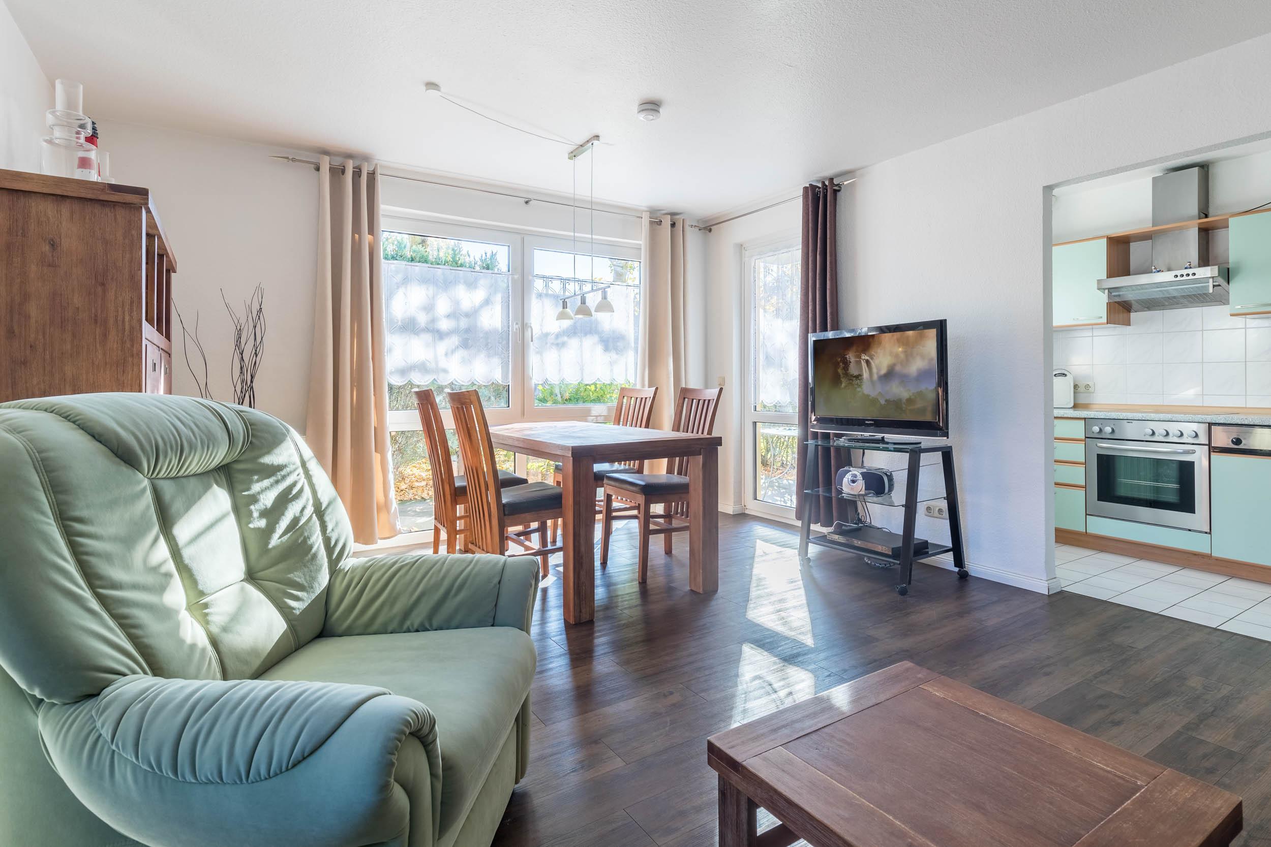 In dieser gemütlich ausgestatteten 2-Zimmer-Ferienwohnung im Erdgeschoss haben Sie mit zwei Gästen ein ideales Domizil auf Zeit.