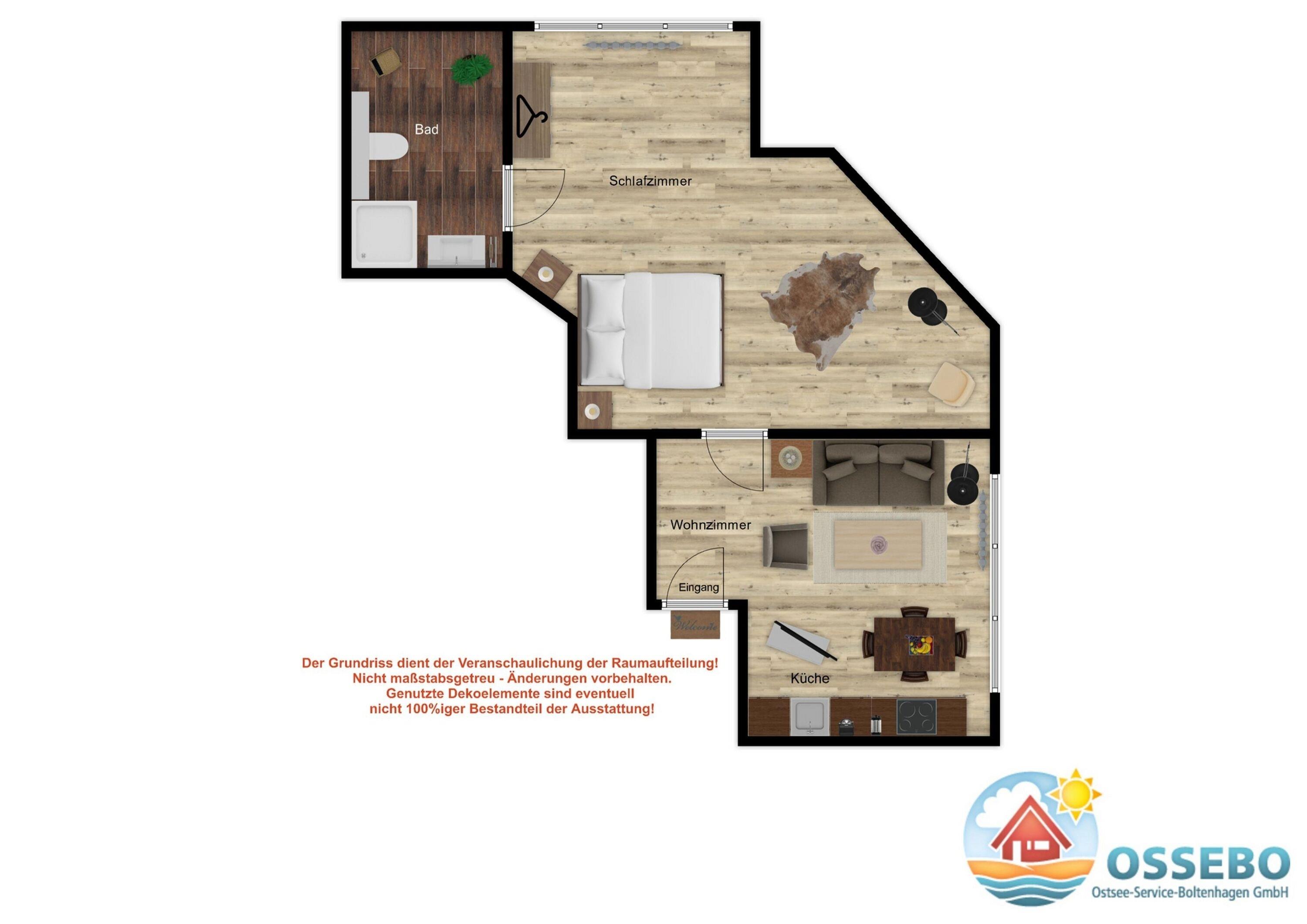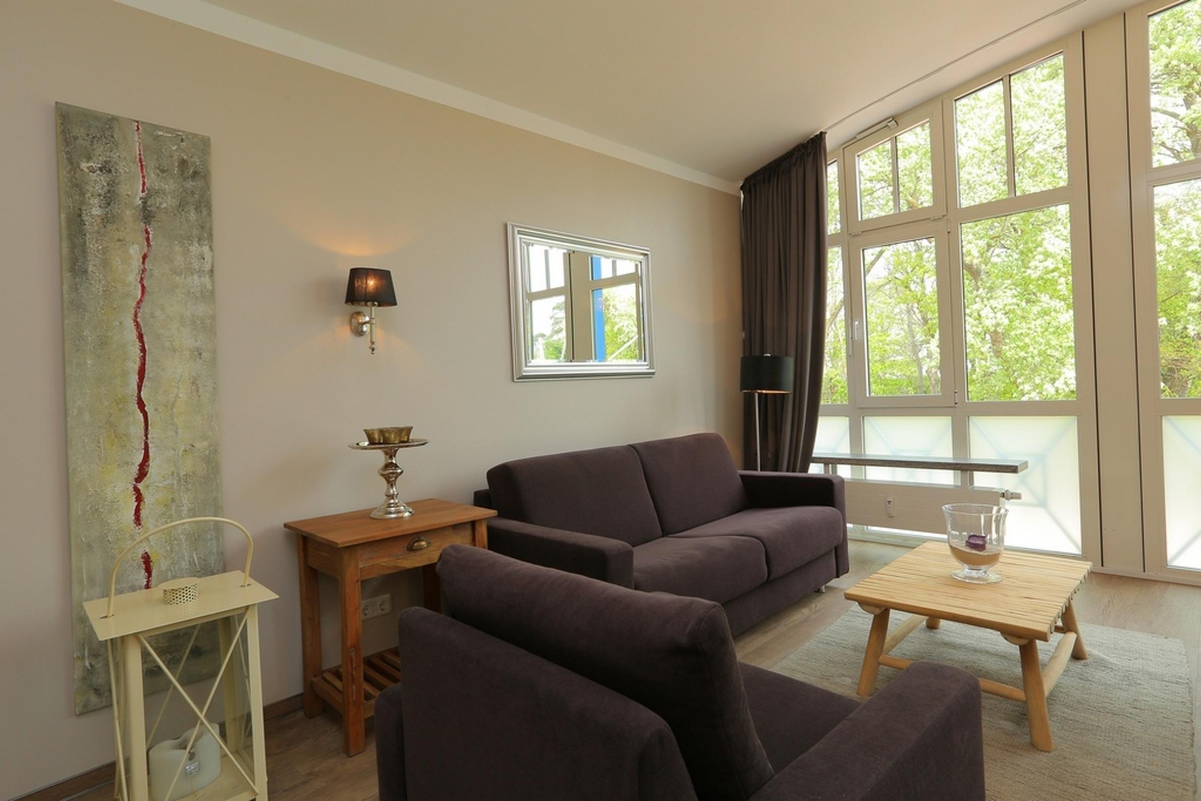 Die 2-Zimmer-Wohnung befindet sich im 1.OG (Richtung Mittelpromenade) und bietet auf rund 58qm Wohnfläche eine moderne Ausstattung für bis zu 4 Gäste.
