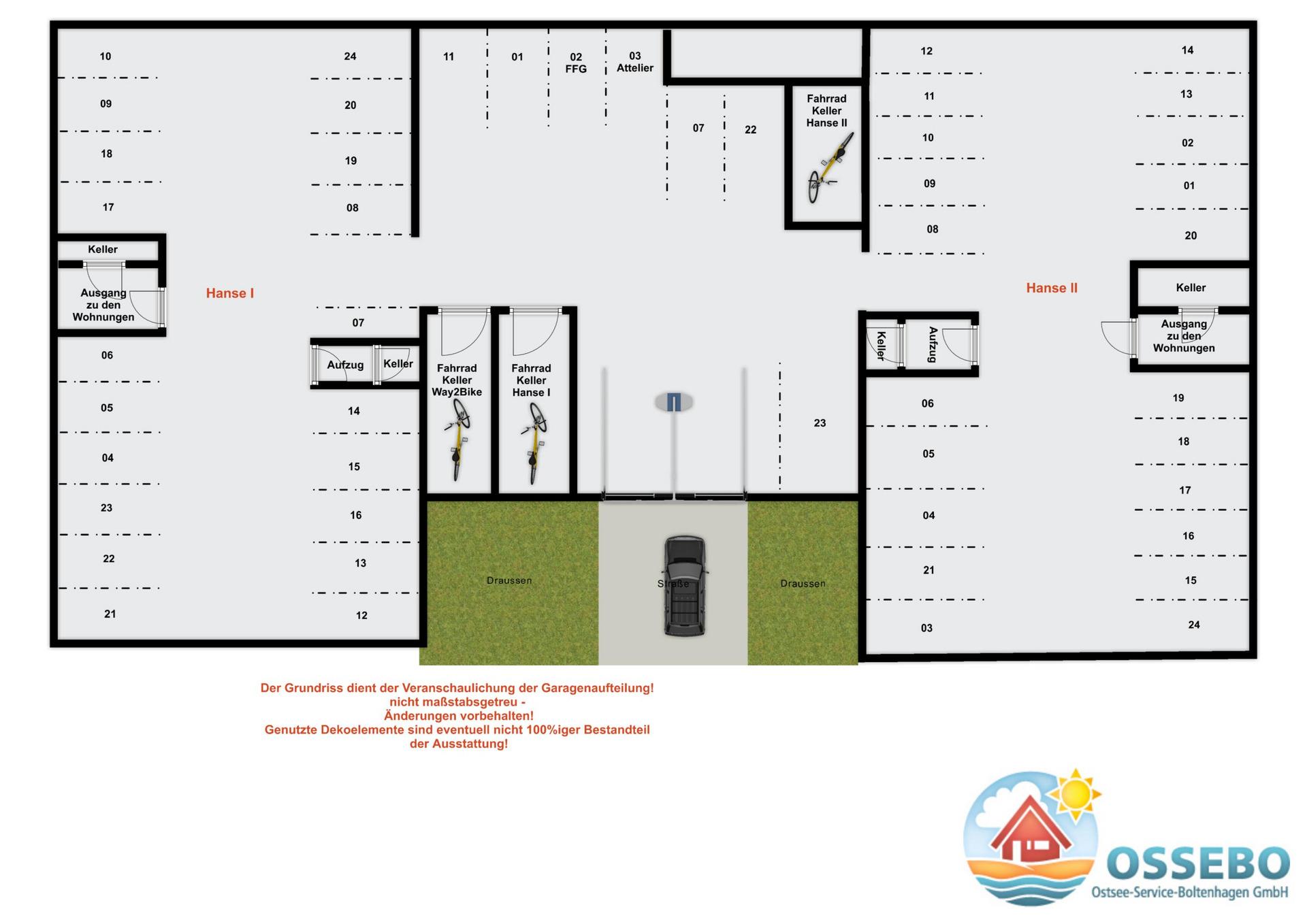 In der Tiefgarage befinden sich für Haus I und Haus II jeweils ein allgemeiner Fahrradkeller (begrenzter Platz). Hier können Sie Ihre geliehenen oder mitgebrachten Fahrräder [&] Co. unterbringen.