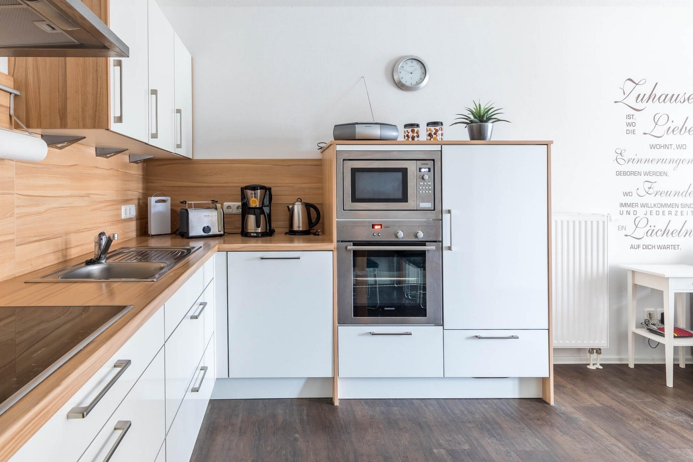Die Küche ist u.a. mit einem Cerankochfeld, einem Backofen, Mikrowelle, Kühlschrank mit Gefrierfach und Spülmaschine ausgestattet. Selbstverständlich bietet sie auch ausreichend Geschirr, Besteck, Kochgeschirr, Elektrokleingeräte usw.