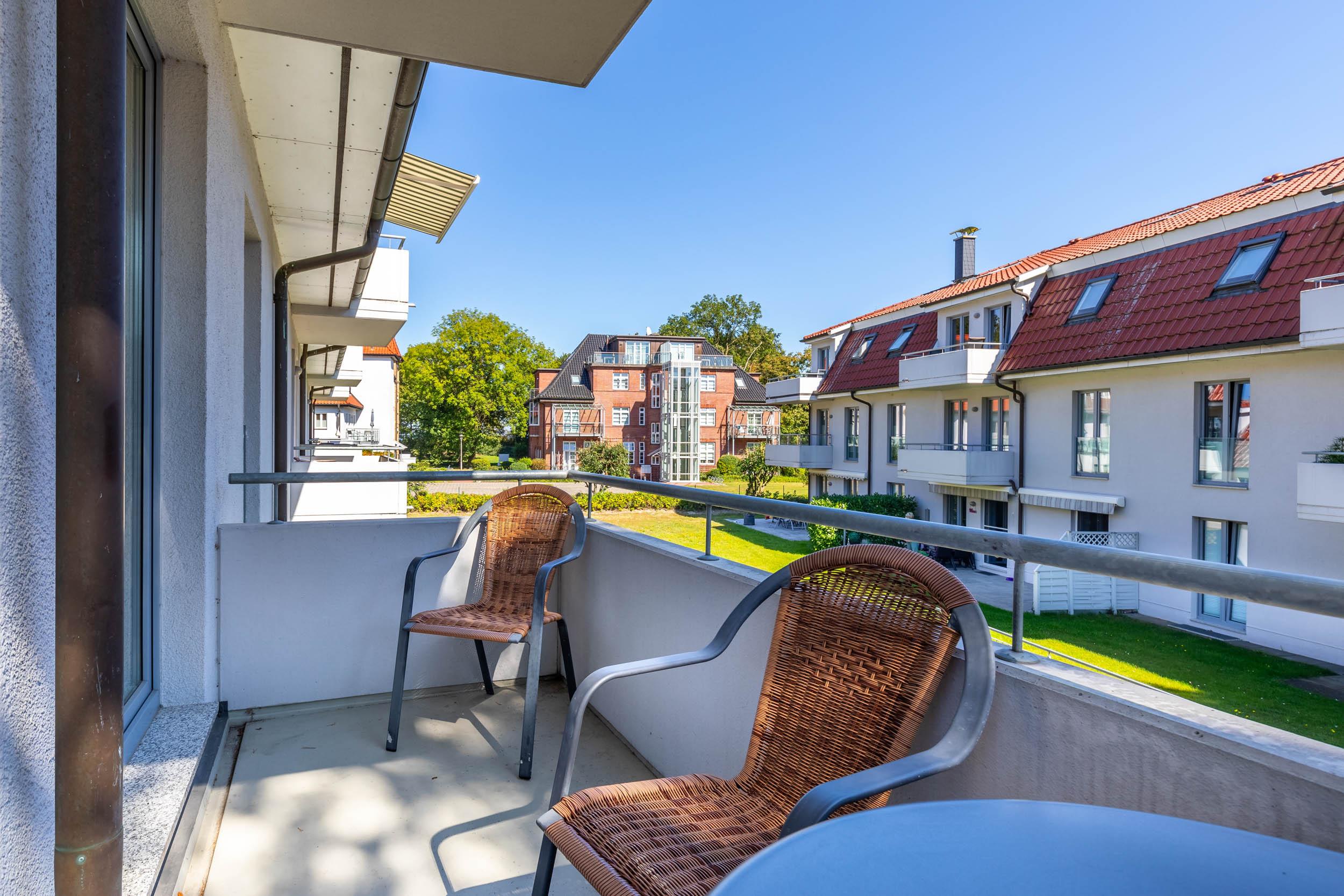Genießen Sie die herrliche Ostseeluft auf dem möblierten Südost-Eckbalkon.