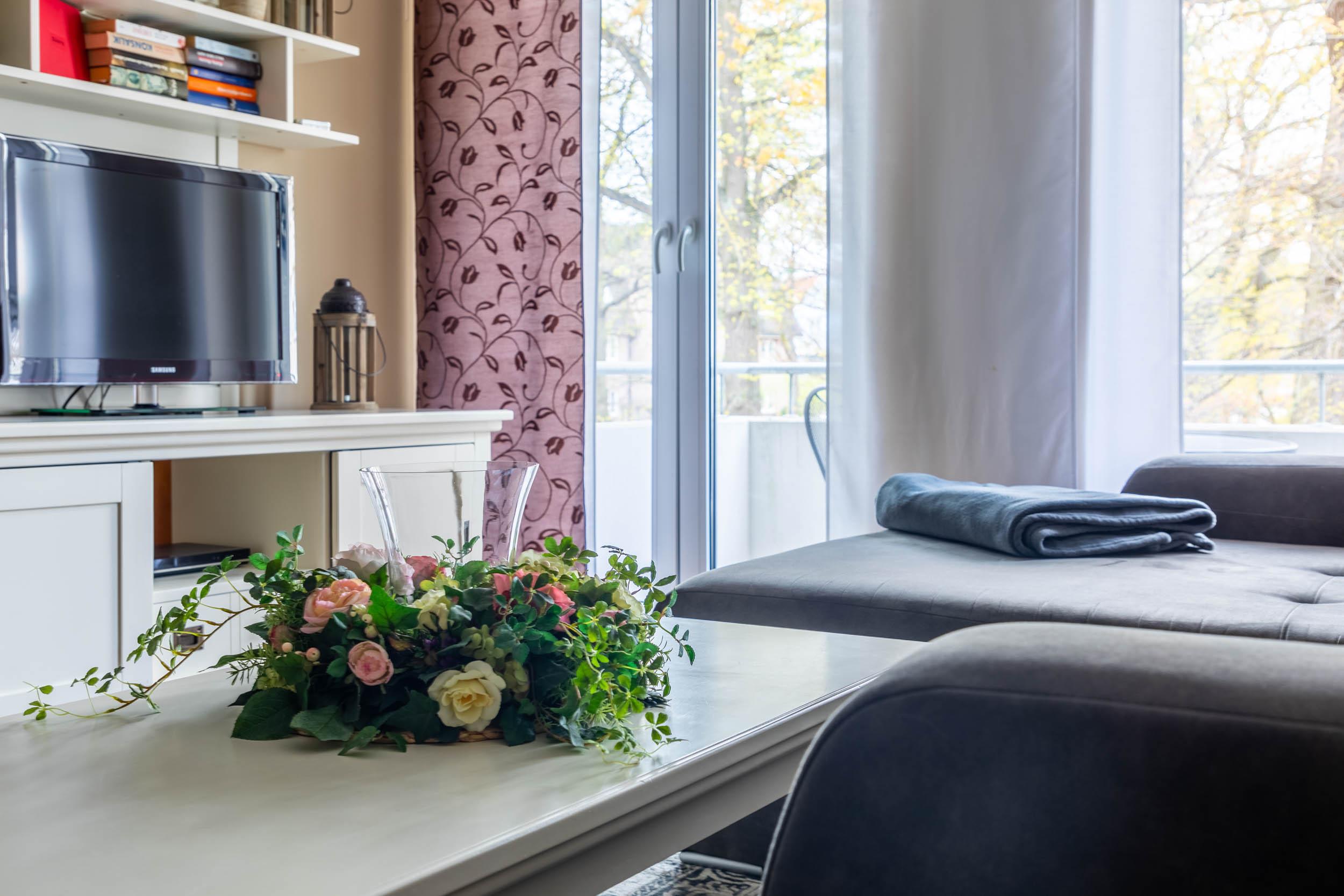 Dieses 50qm große, exklusive 2-Zimmer-Appartement im 1.OG verfügt für 2-4 Gäste + 1 Kleinkind über eine moderne Ausstattung im Landhausstil. Besonders attraktiv erscheinen zum Beispiel die bodentiefen Fensterelemente, die für eine lichtdurchflutete Atmosphäre im Raum sorgen.