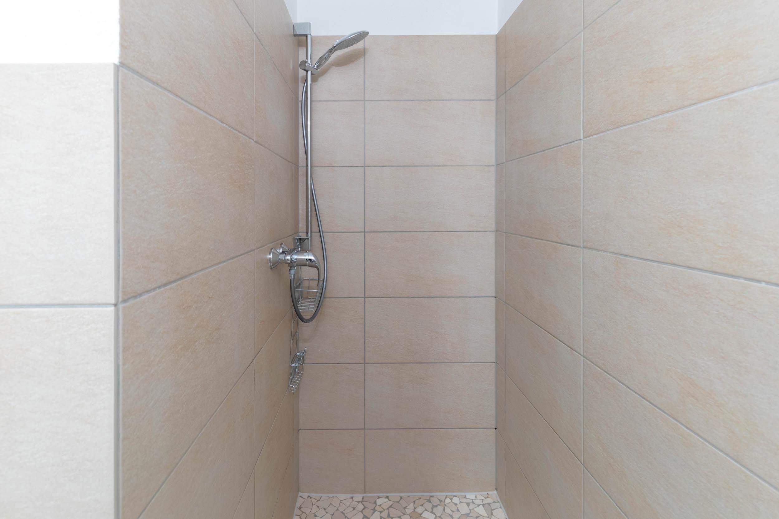 Im Bad erwartet Sie eine barrierefreie Dusche, ein WC und einen Handtuchtrockner.