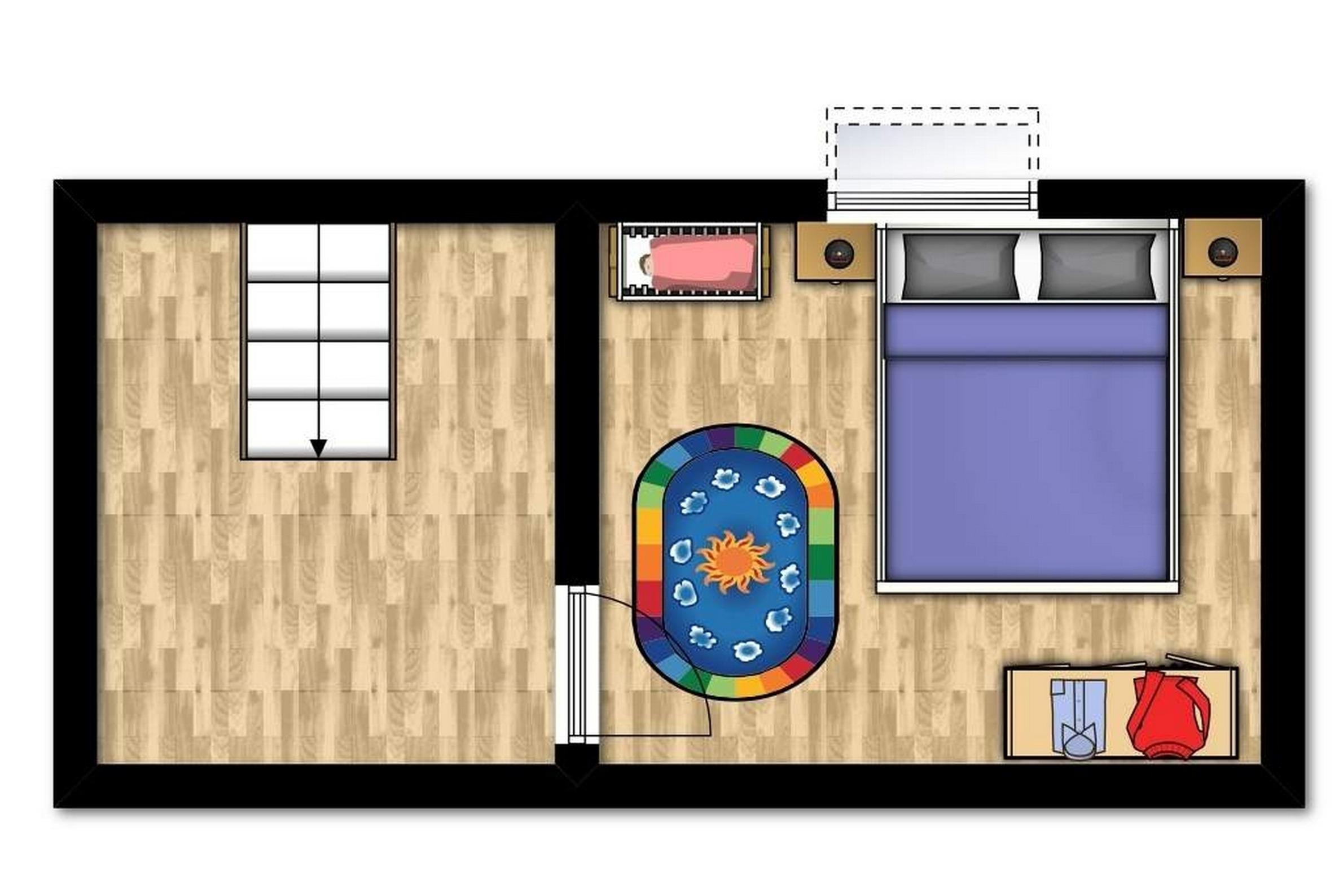 Das zweite Schlafzimmer im oberen Bereich (DG) ist zudem mit einem weiteren Fernseher ausgestattet. Hier lässt sich z.B. auch bequem das Reisebettchen aufstellen.