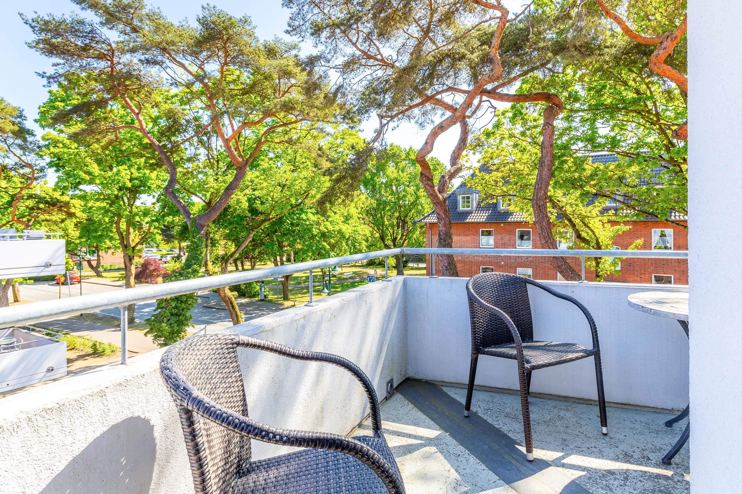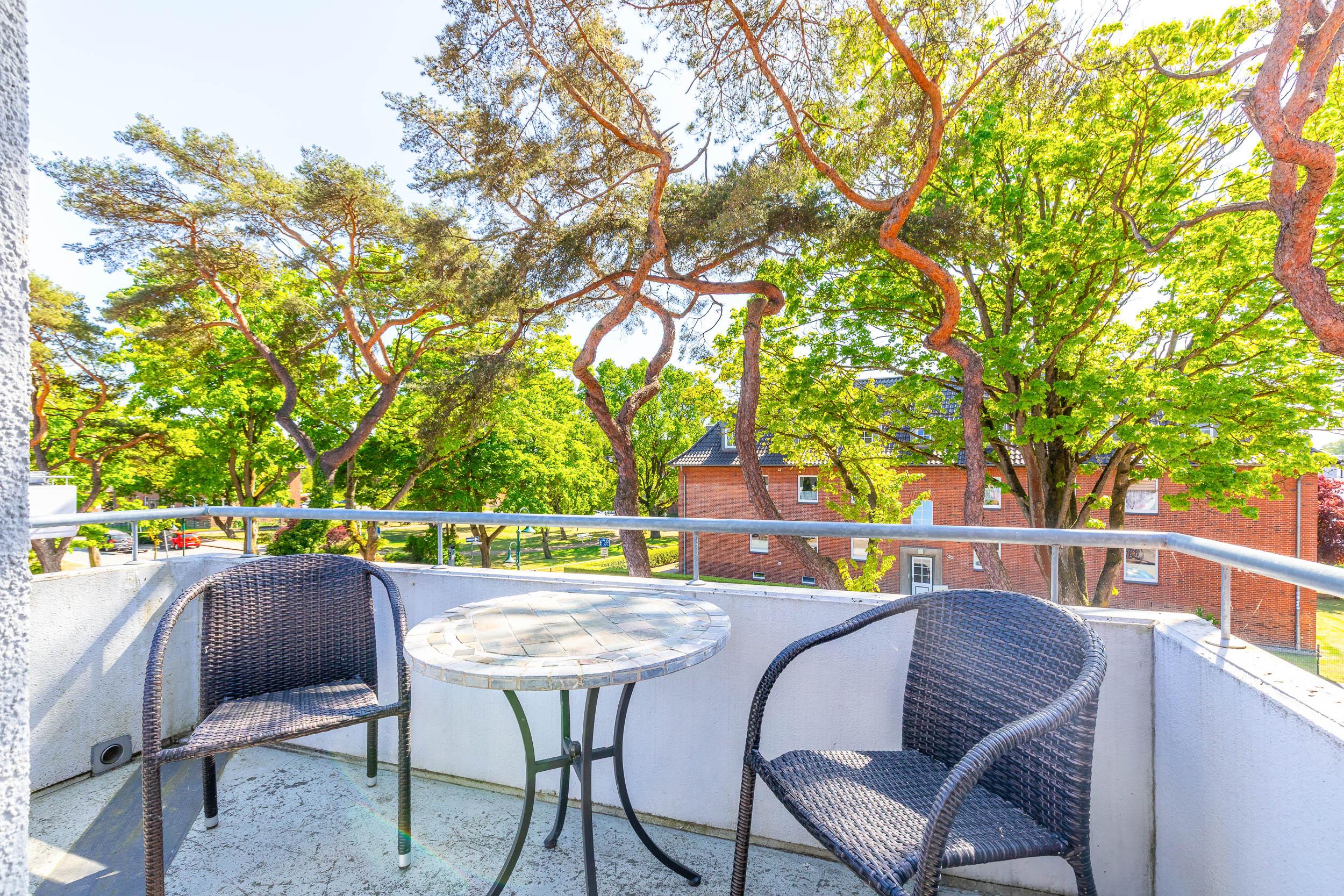 Genießen Sie die frische Ostseeluft auf dem möblierten Südost/ Südwest-Eckbalkon.