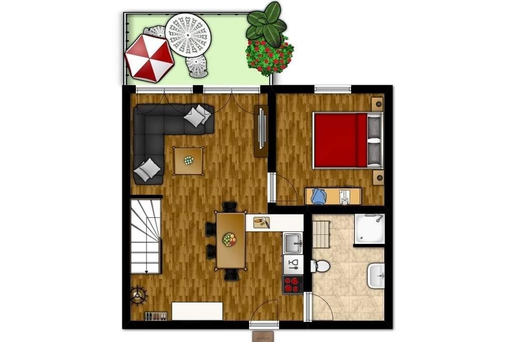 Die beliebte 3-Zimmer-Ferienwohnung befindet sich im 2.OG und bietet über 2 Ebenen eine familienfreundliche Ausstattung für 2 bis 5 Personen.