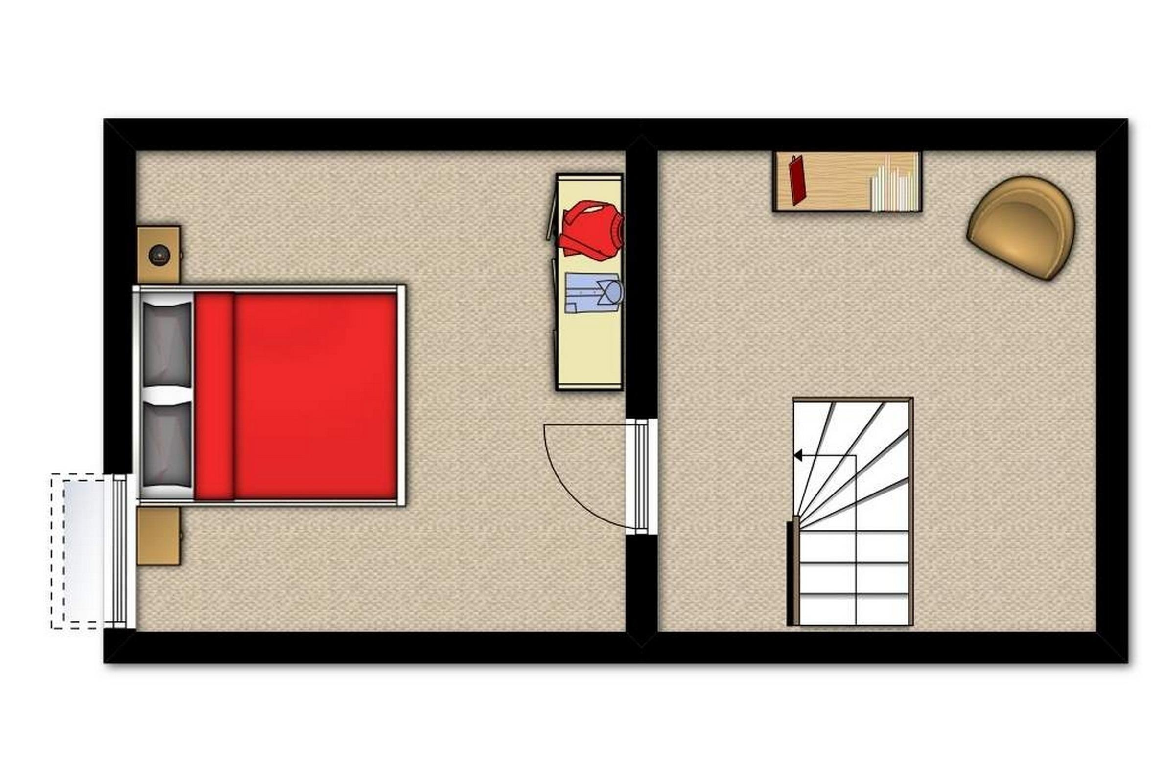 Weiterhin befindet sich das Gäste-/ Kinderzimmer auf dieser Etage. Dieses bietet 2 Einzelbetten und einen großen Kleiderschrank.