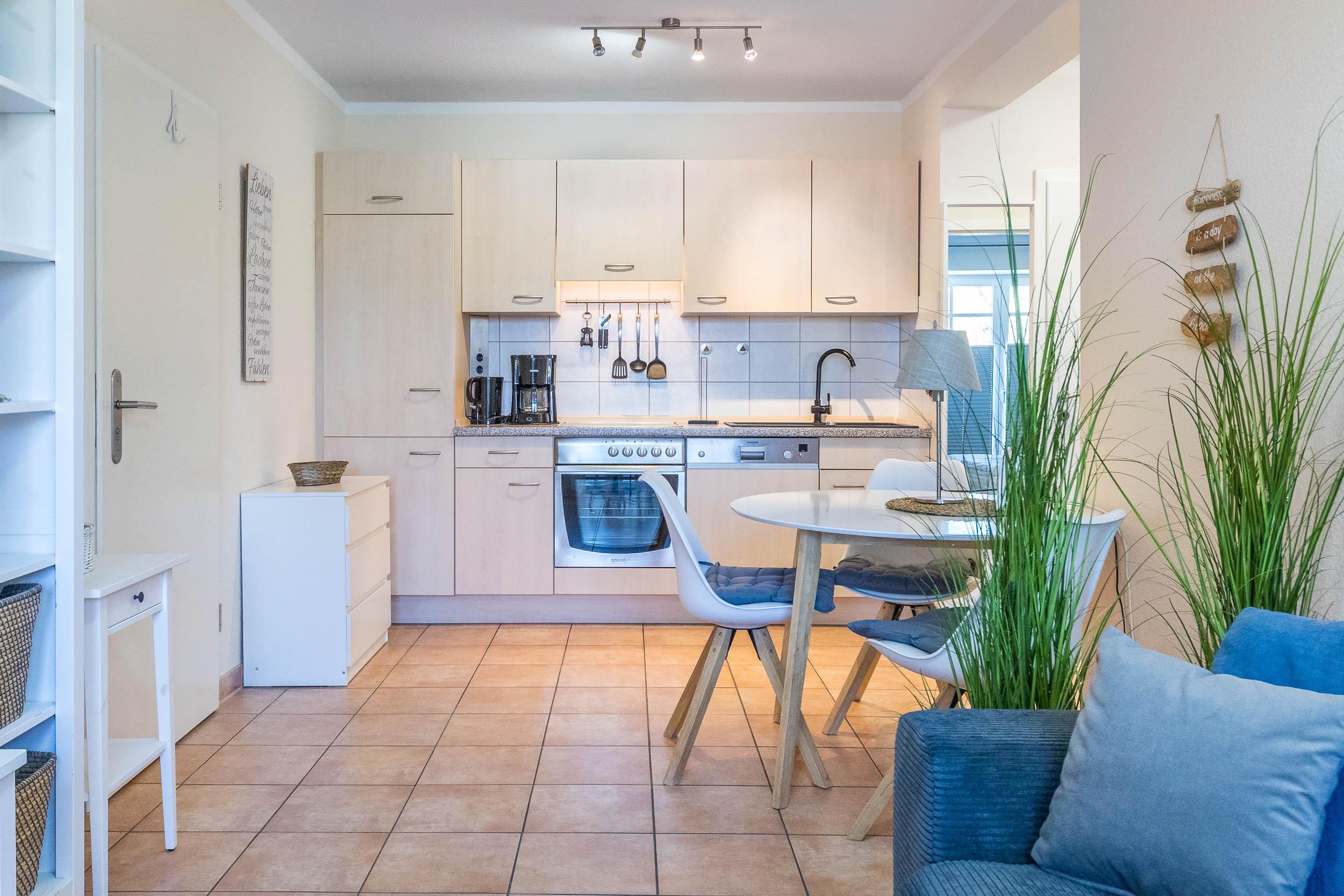 In der modern ausgestatteten Wohnküche können Sie sich komplett verpflegen und an der gemütlichen Essecke einnehmen.