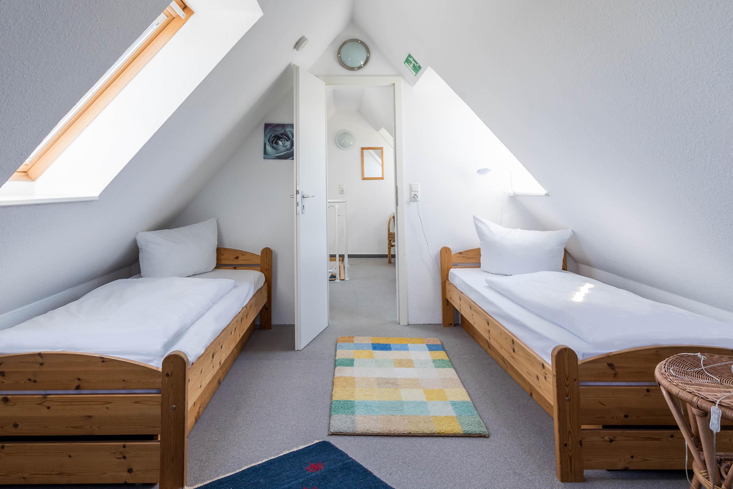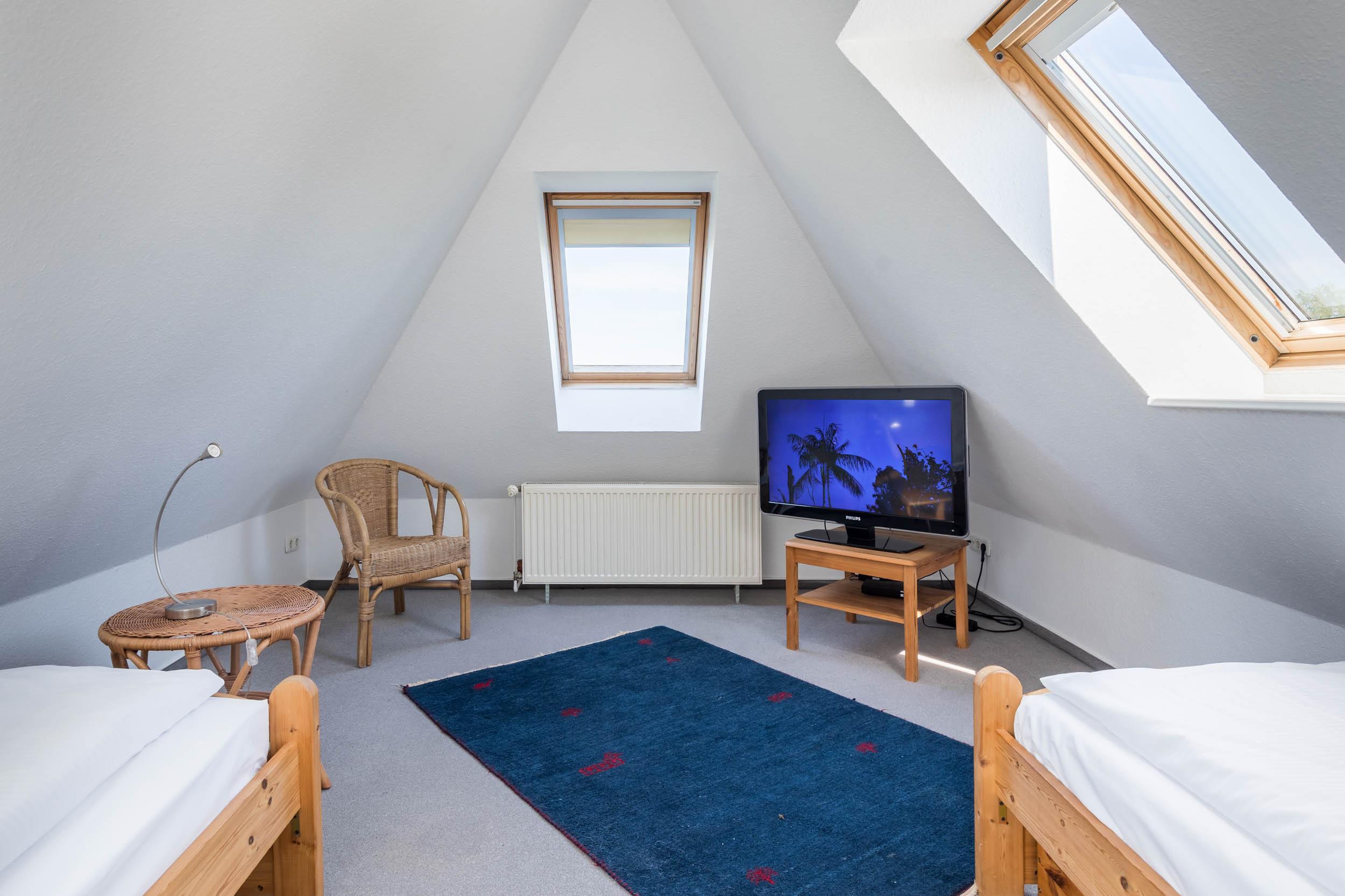 Die Wohnung hat zwei Schlafzimmer, wovon das Eine mit Doppelbett und einem Kleiderschrank und das Andere, in zweiter Wohnebene gelegen, mit 2 Einzelbetten und zweitem TV ausgestattet ist.