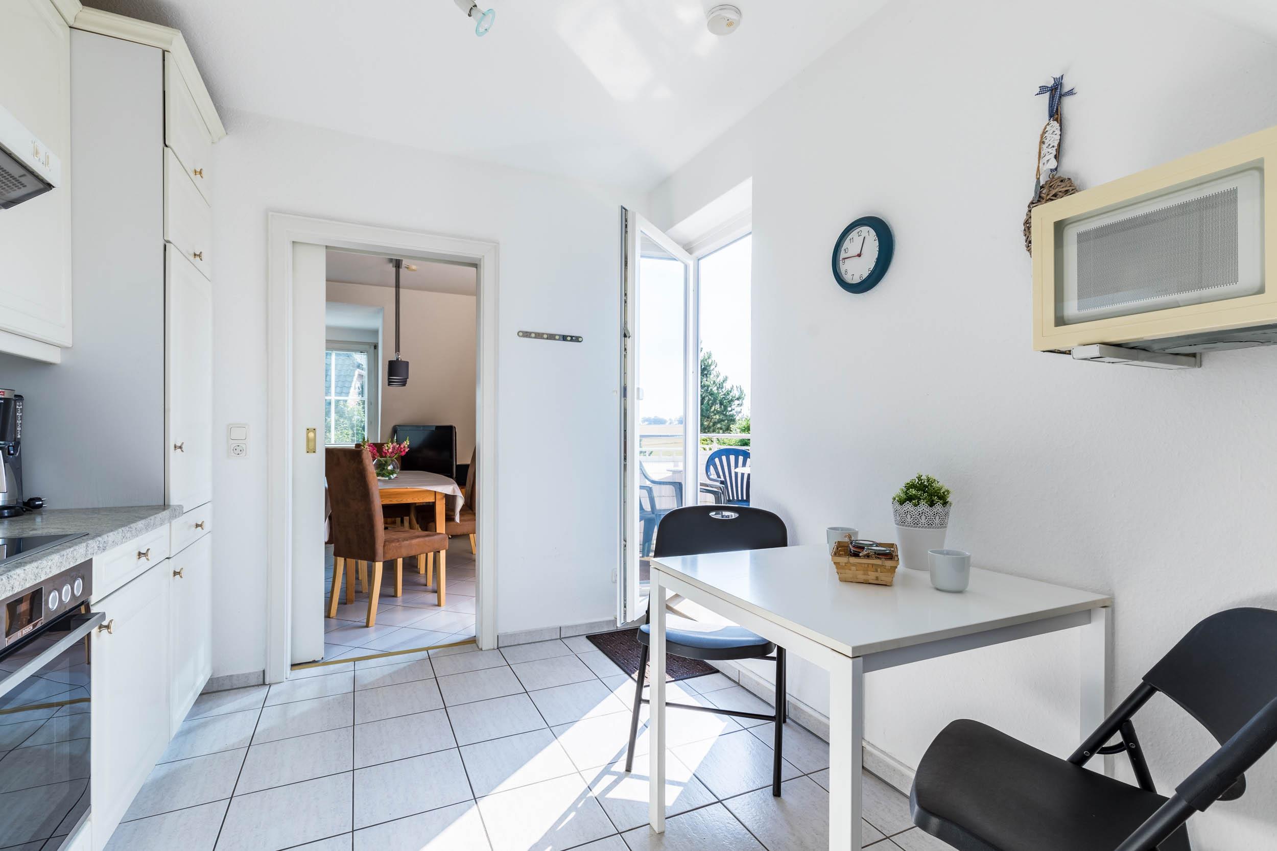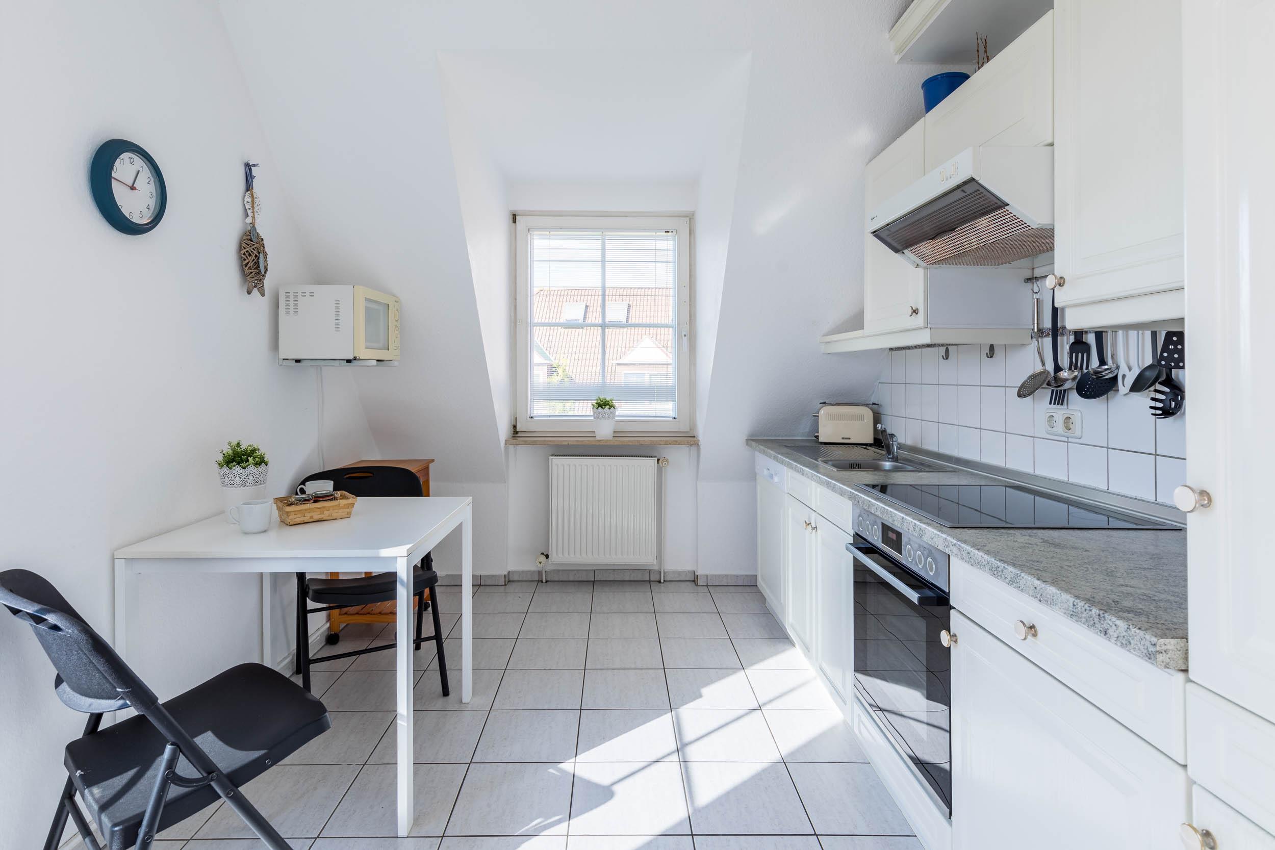 In der separaten Landhausküche sind alle gängigen Küchengeräte zu finden, die Sie für eine sorglose Selbstverpflegung benötigen.