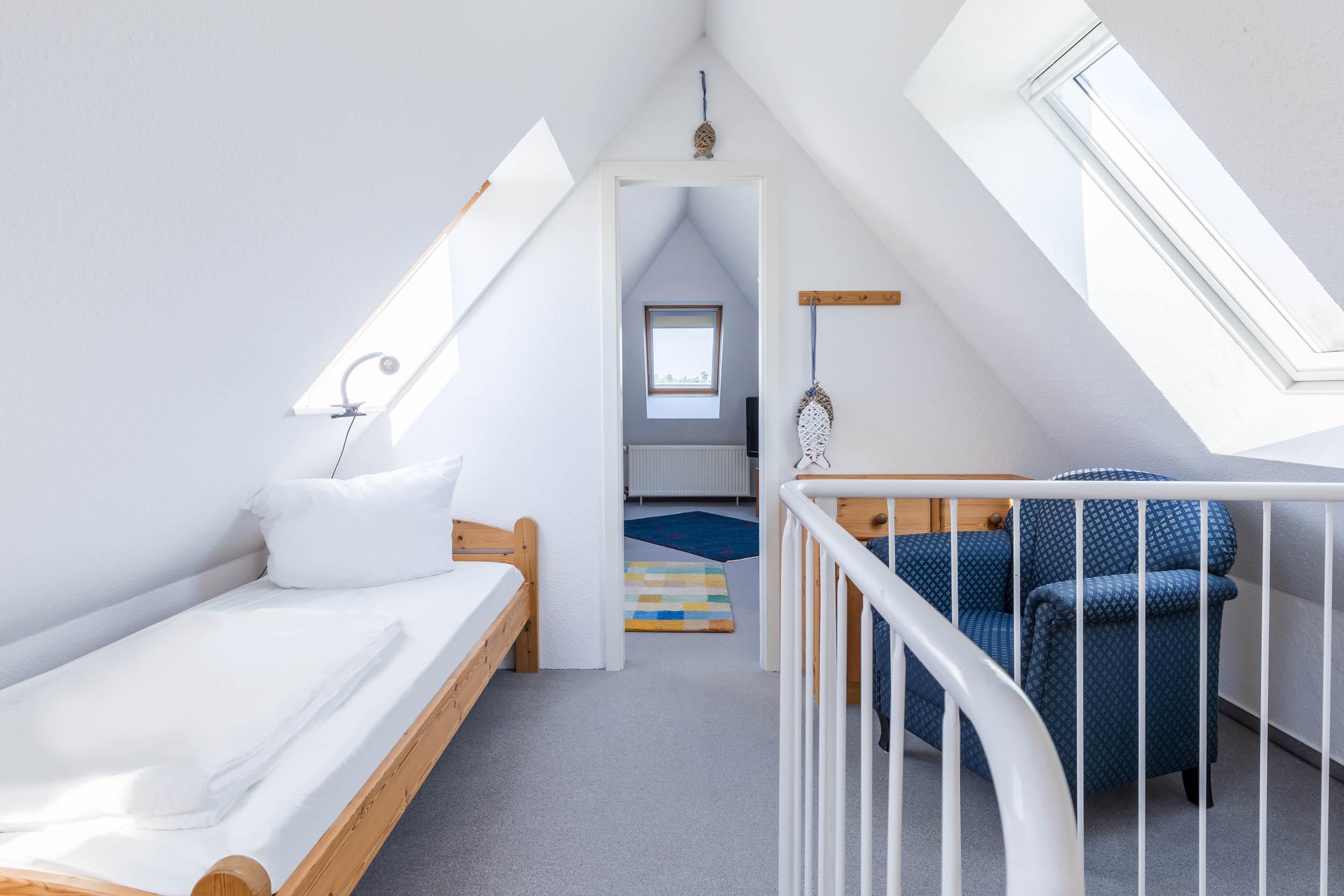 Ebenfalls haben Sie in der zweiten Wohnebene eine offene Schlafgalerie, in welcher Sie ein Einzelbett vorfinden.