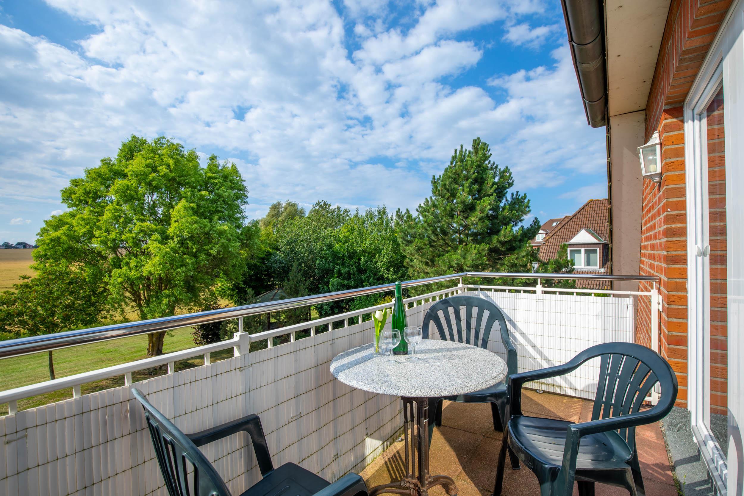 Der möblierte Balkon mit tollem Ausblick in die Natur kann vom hier aus erreicht werden.