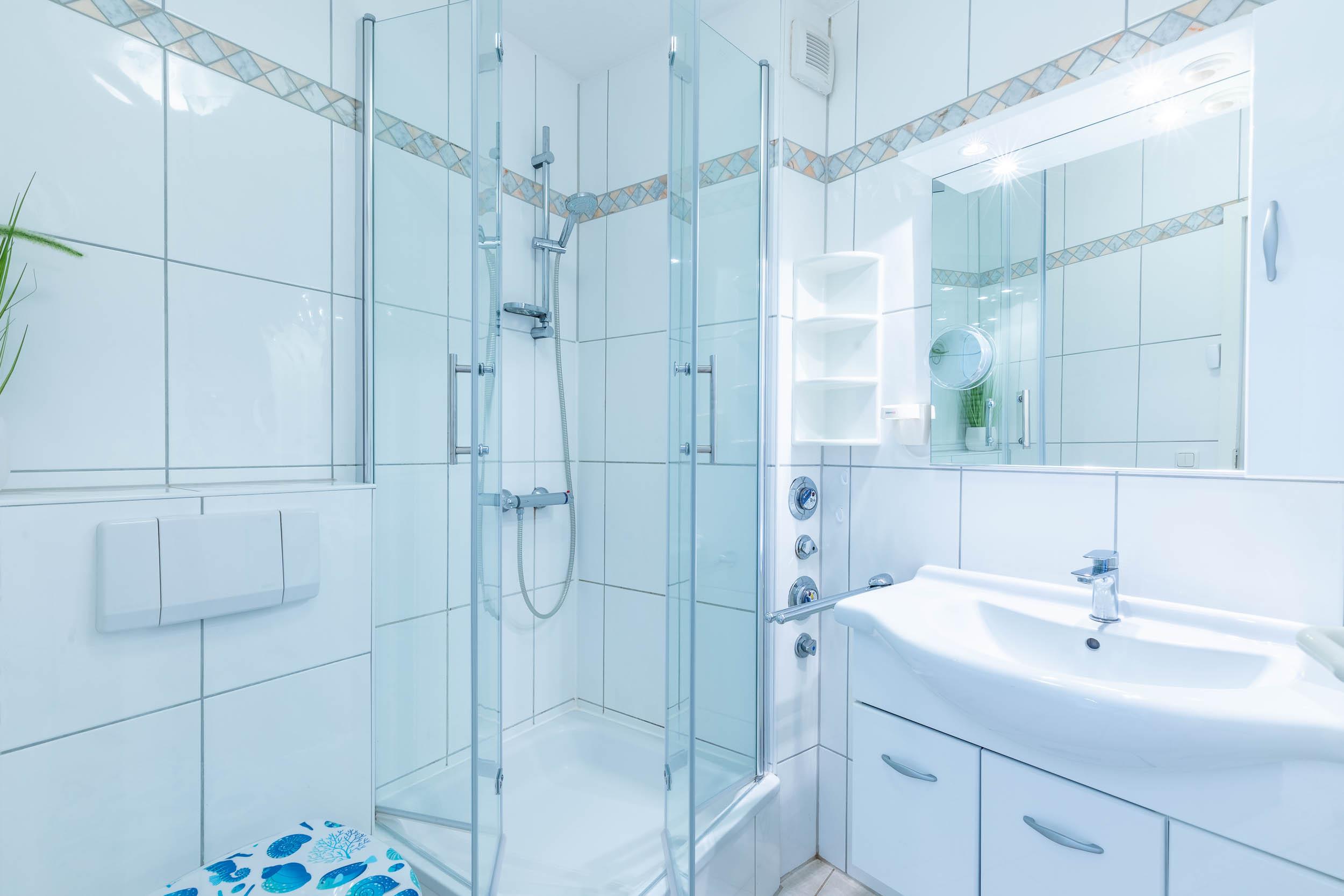 Im hellen Duschbad mit WC können Sie sich frisch machen.