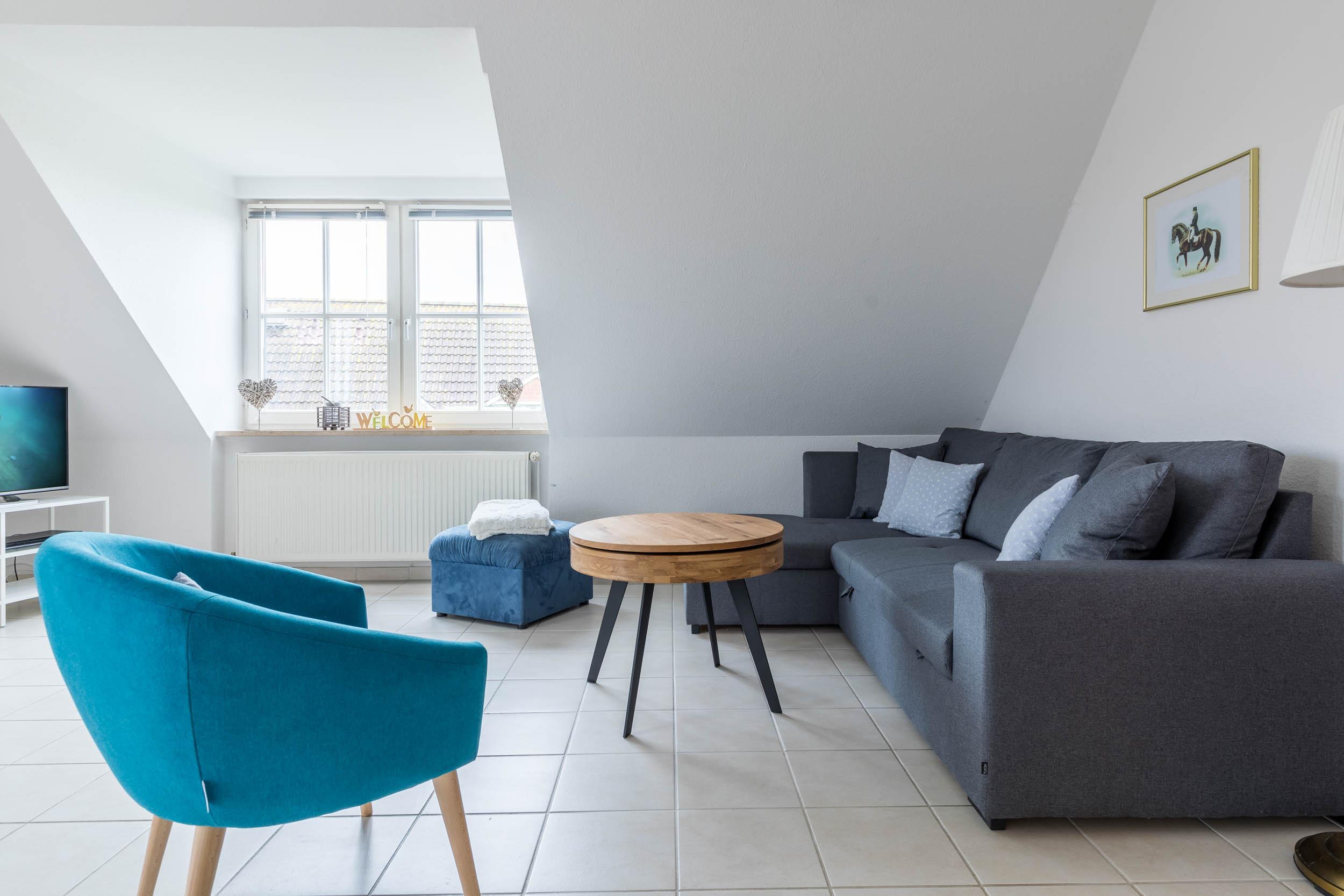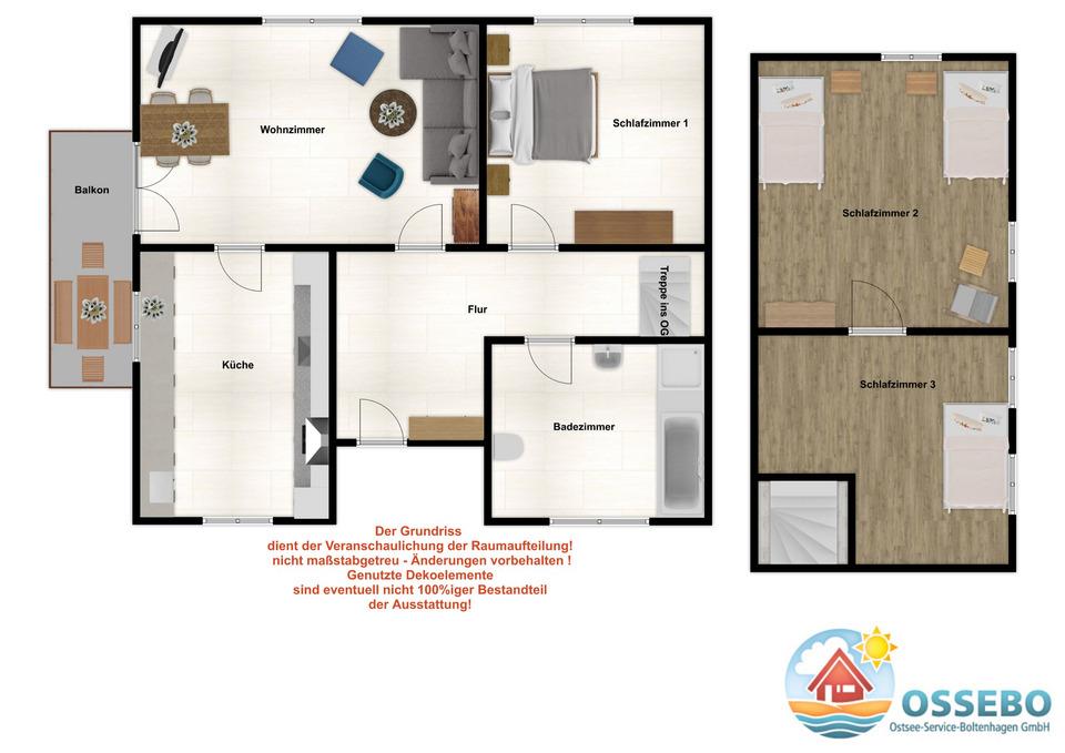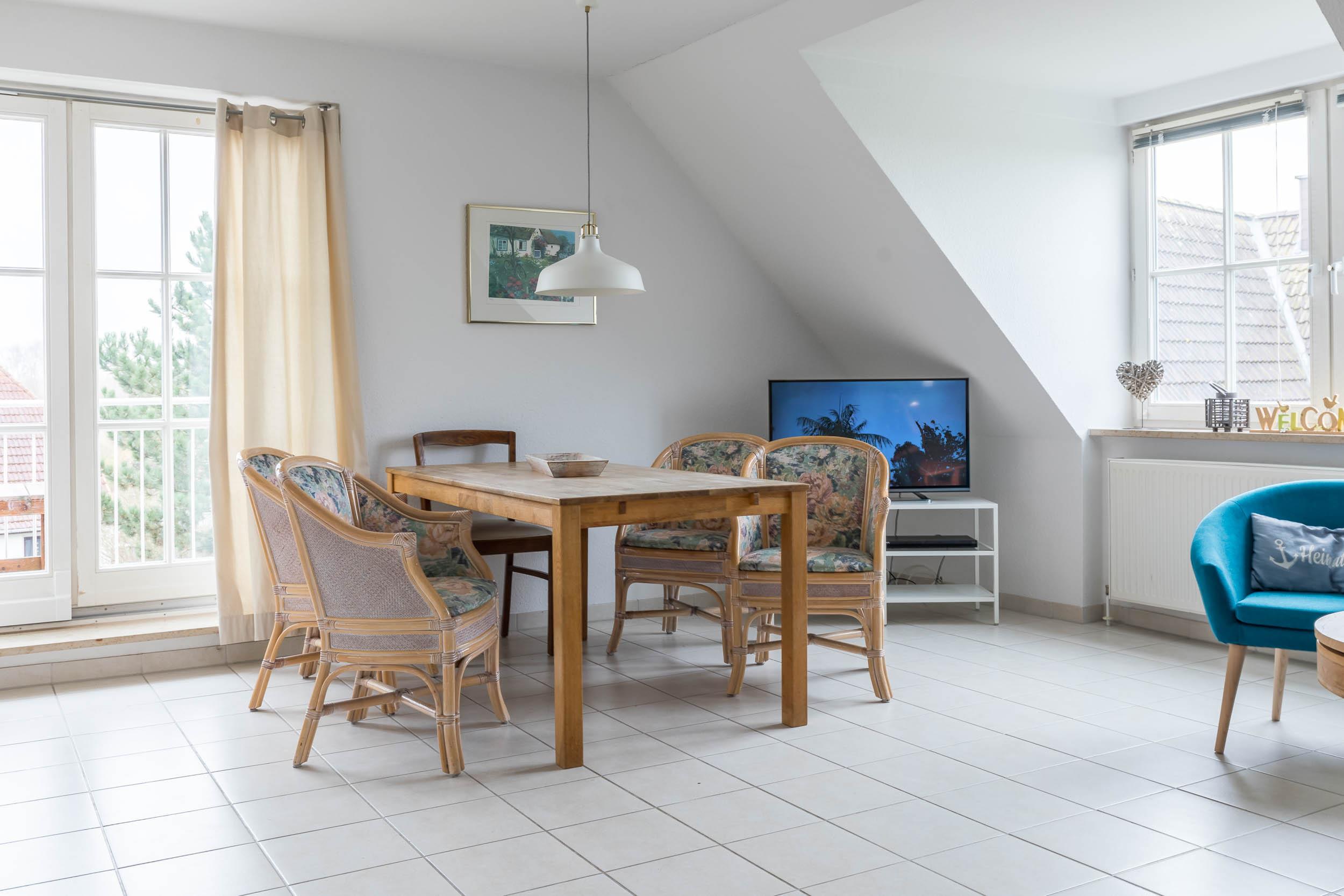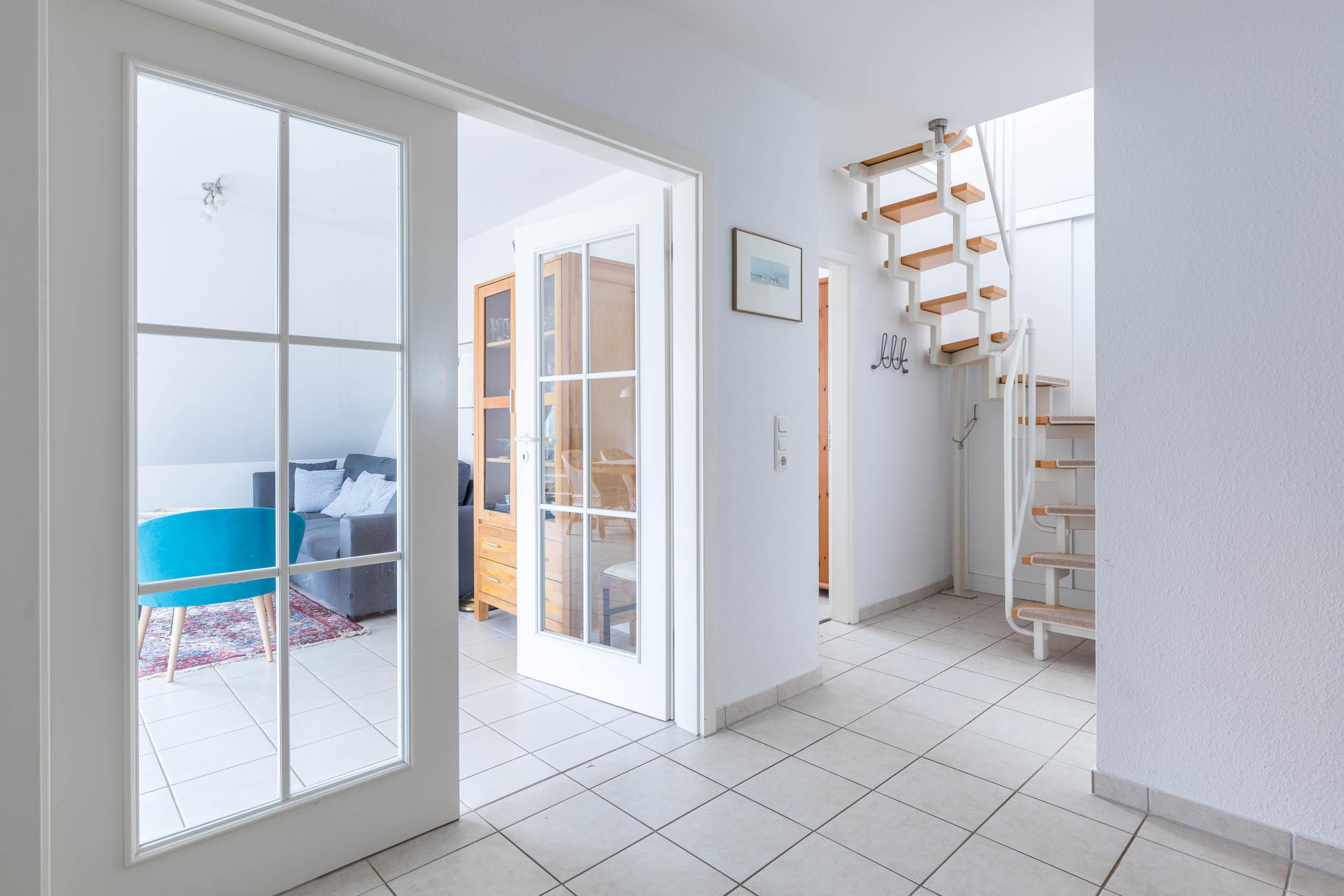 Die 3-Zimmer-Ferienwohnung befindet sich im 1. Obergeschoss und erstreckt sich über 2 Etagen. Sie bietet eine gemütliche Einrichtung bis 5 Personen.