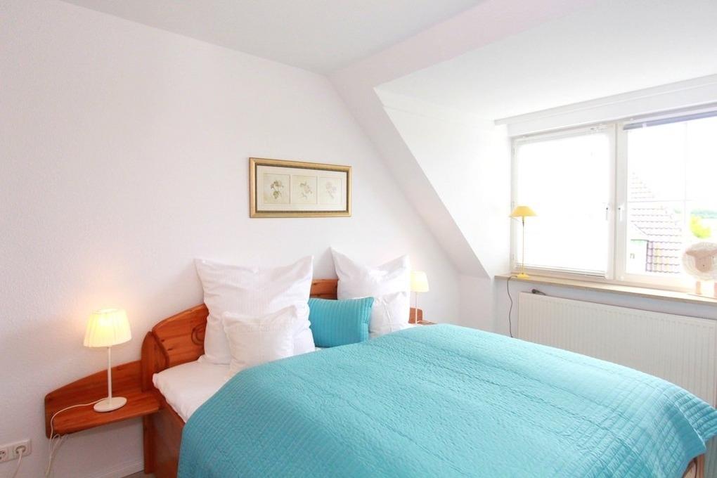 Auch das Schlafzimmer mit gemütlichem Doppelbett und Kleiderschrank finden Sie im unteren Bereich Wohnung.