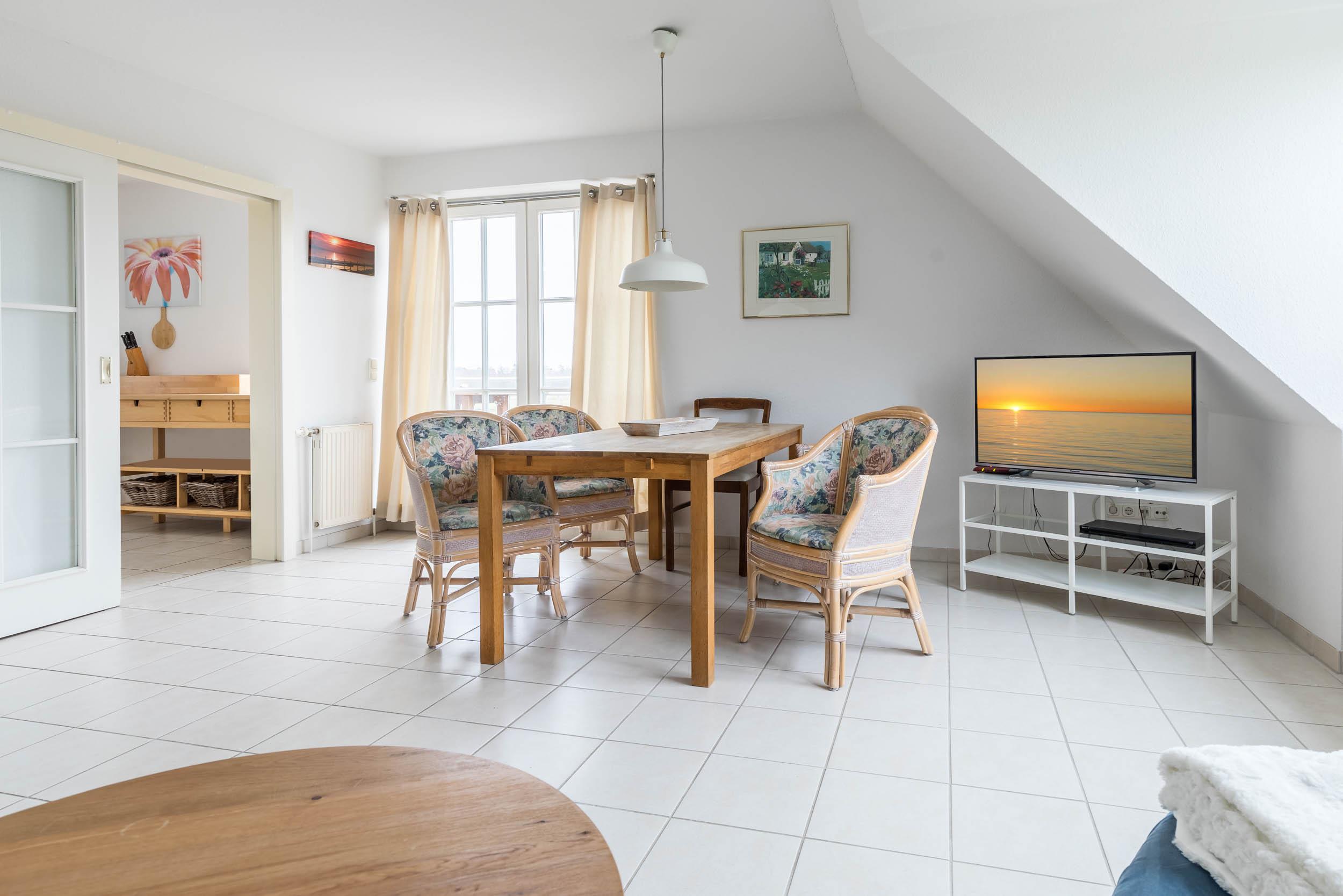 Diese helle und stimmig eingerichtete Wohnung ist für maximal 5 Personen plus Kleinkind und eine Mieteinheit im „Ferienparadies Jenny“.