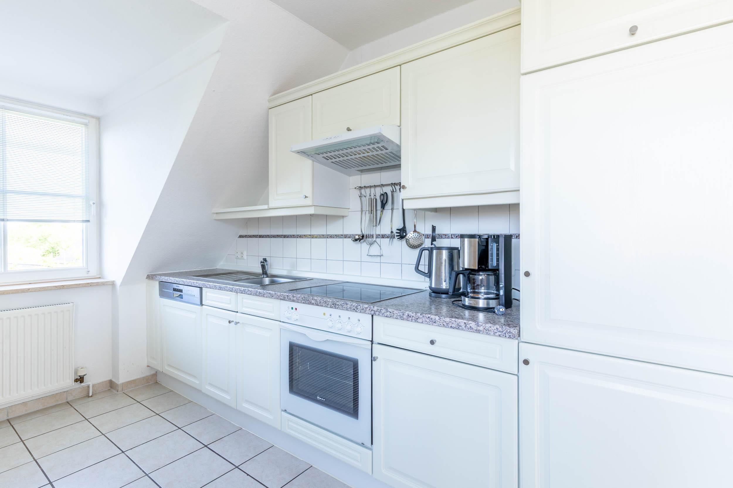 Die separate Küchenzeile ist bestens ausgestattet und ideal für Selbstversorger. Zur Verfügung stehen u. a.: Spülmaschine Kühlschrank mit Gefrierfach Kochmöglichkeiten Die angrenzende Essecke bietet ausreichend Platz für gemeinsame Mahlzeiten.