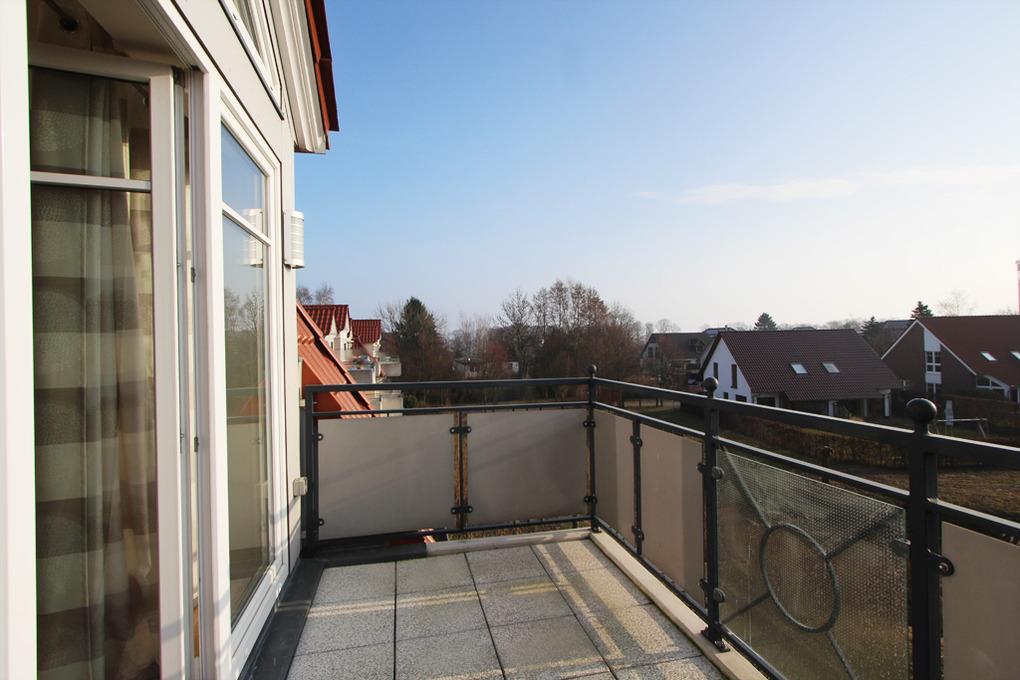 Vom Wohnzimmer aus gelangen Sie auch auf den möblierten Balkon.