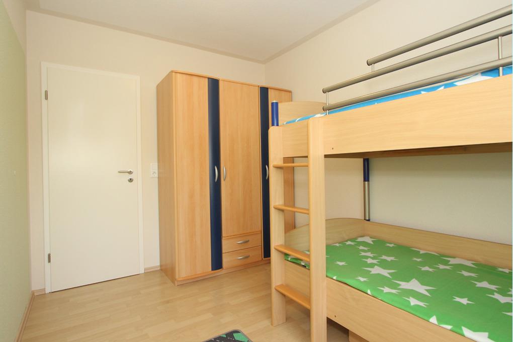 Weiterhin finden Sie in dieser Unterkunft ein Schlafzimmer mit Doppelbett und ein Gäste-/ Kinderzimmer mit einem Etagenbett vor. Beide Zimmer sind zudem mit einem Kleiderschrank ausgestattet. Es ist auch noch Platz vorhanden, um zusätzlich ein Kinderreisebett aufzustellen.