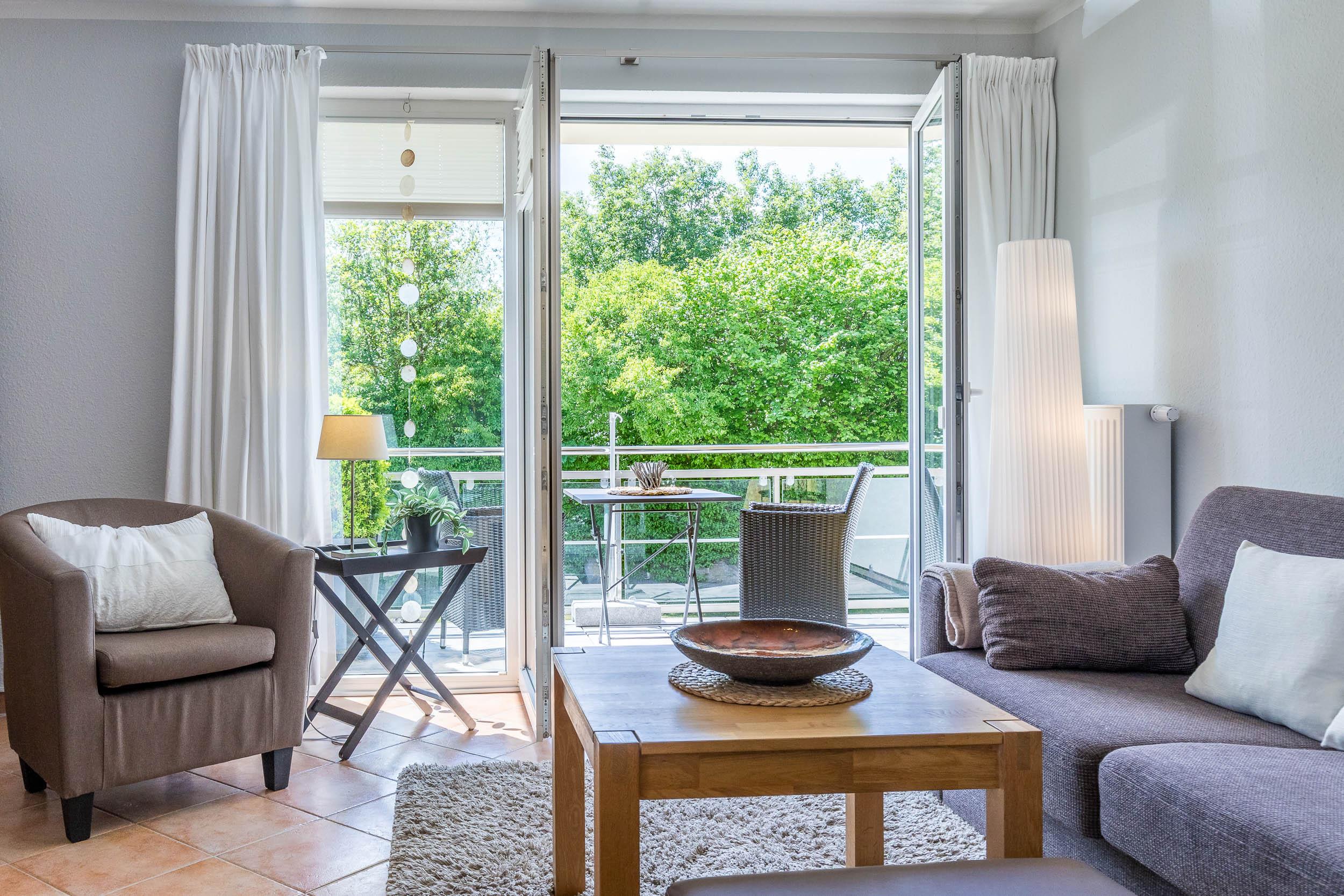 Genießen Sie die Sonne dort, wo sie scheint, denn vom Wohnzimmer aus stehen Ihnen in dieser Wohnung gleich 2 möblierte Balkone zur Verfügung (Südwest und Südost).