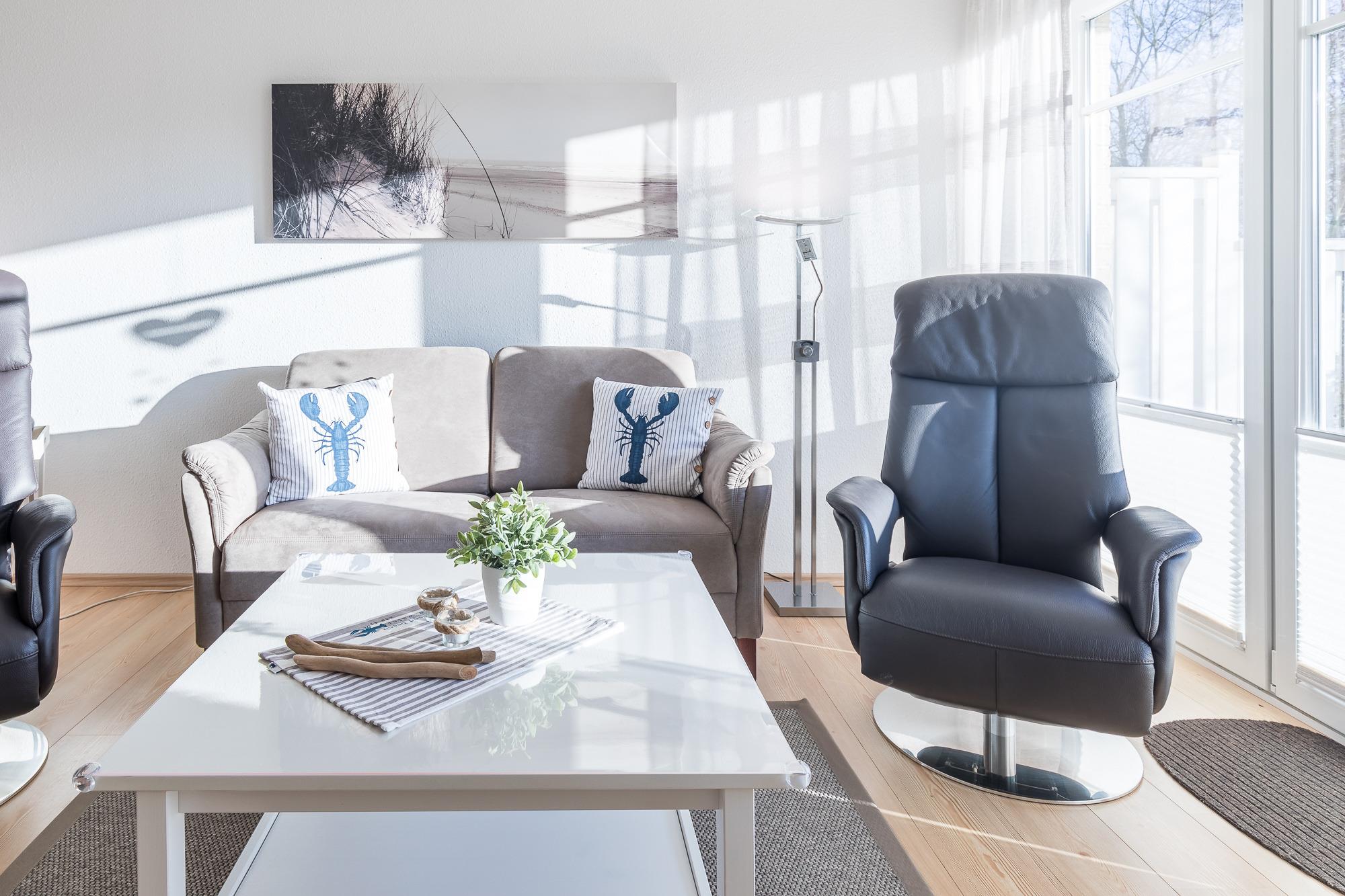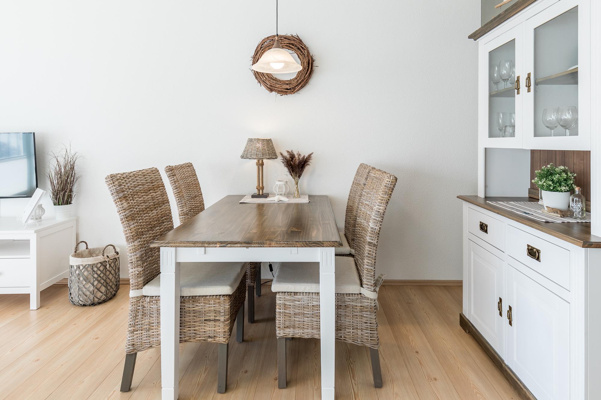 Die komfortable 3-Zimmer-Ferienwohnung liegt im EG und verfügt auf 68qm Wohnfläche über eine Ausstattung für 4 Gäste + Kleinkind.