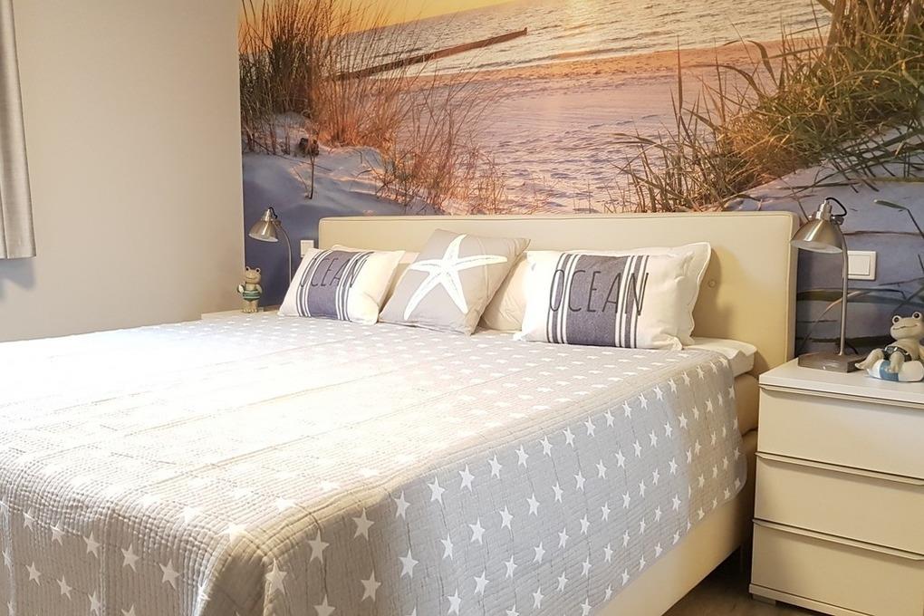 In dem geräumigen Schlafzimmer finden Sie ein Boxspring-Doppelbett und Smart-TV.
