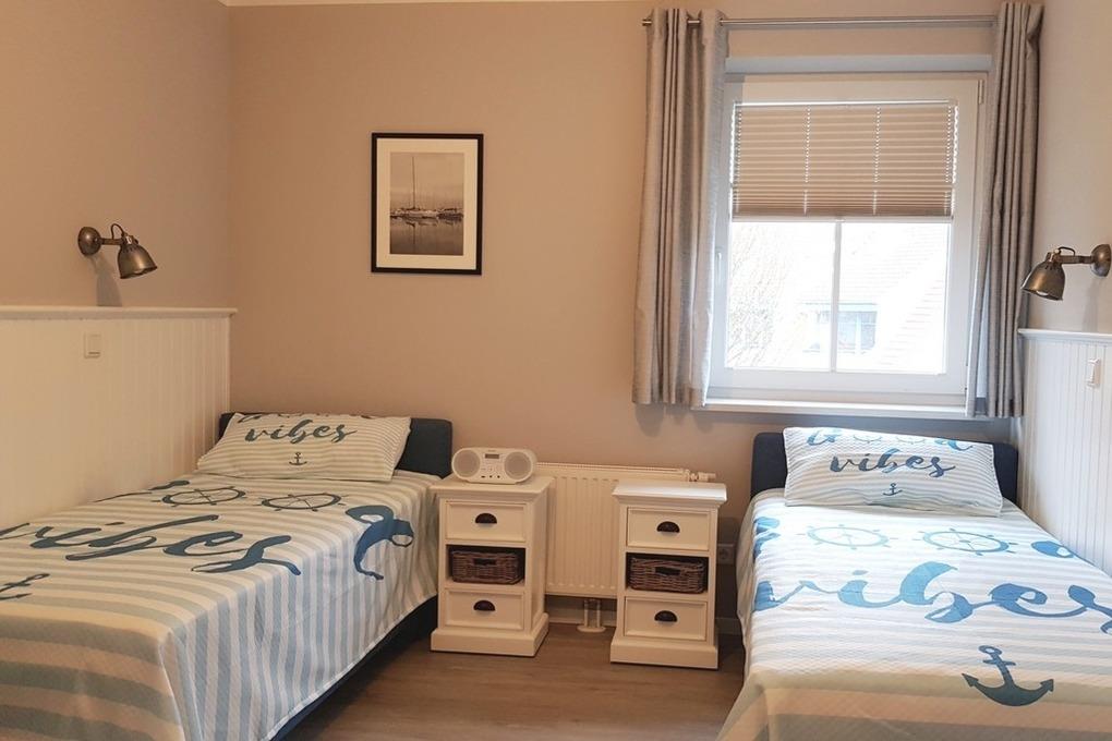 Im Gäste-/ Kinderzimmer befinden sich zwei einzelne Boxspringbetten. Mit einem CD-Radio können Sie hier Musik hören oder Ihren Kindern zum Einschlafen eine CD vorspielen. Für Ihre Urlaubsgarderobe gibt es in beiden Zimmern einen Kleiderschrank.