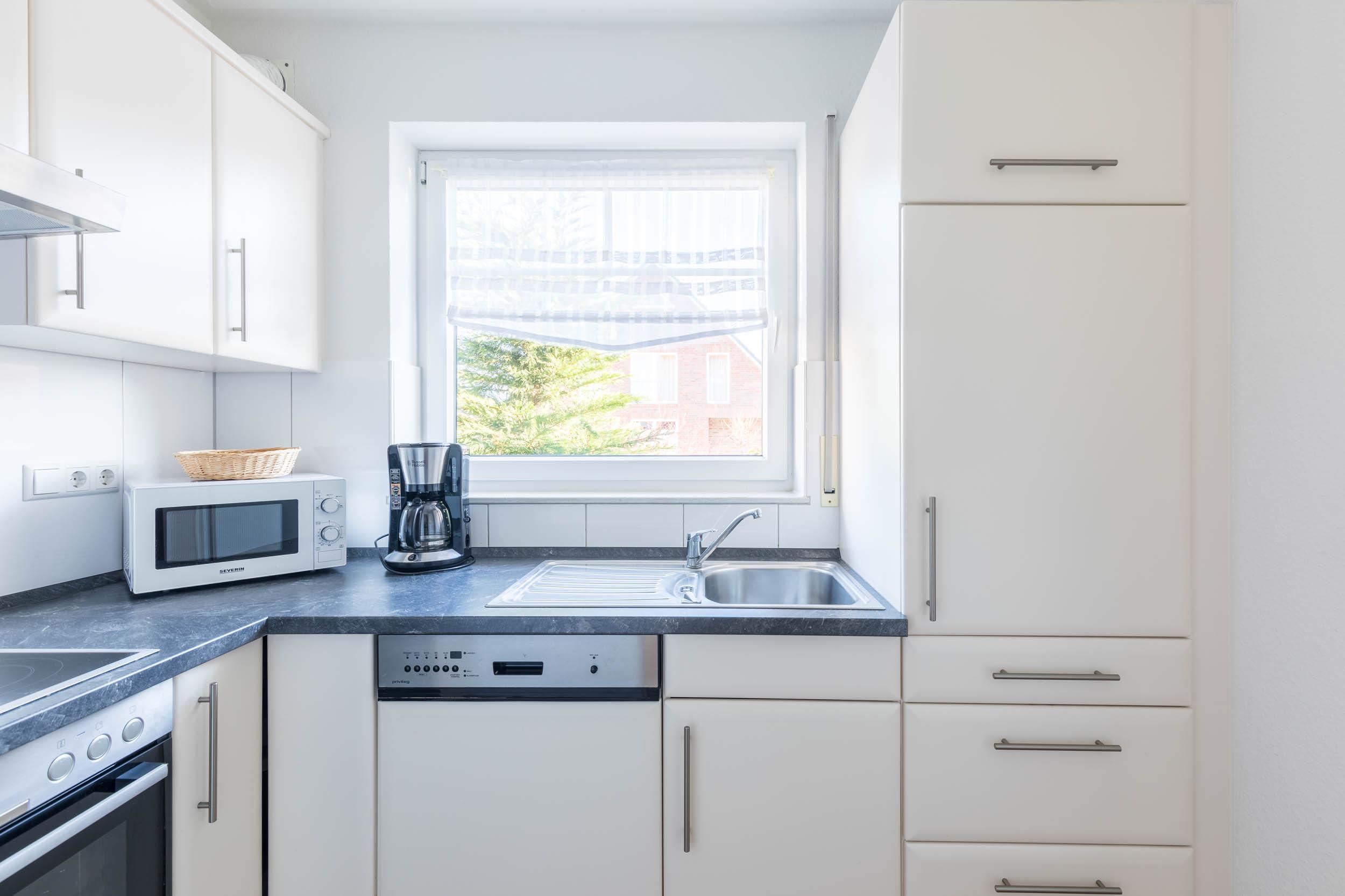 Im Erdgeschoss befindet sich ein verbundener Wohn- und Essbereich mit einer komfortabel ausgestatteten separaten Küchenzeile, die über alle notwendigen Küchengeräte verfügt, um eine bequeme Selbstversorgung zu ermöglichen. Die schöne große Sofalandschaft und Flatscreen-TV plus DVD-Player laden im Wohnzimmer zum gemütlichen Beisammensein ein. Eine Fußbodenheizung sorgt für eine ganzjährige Behaglichkeit.