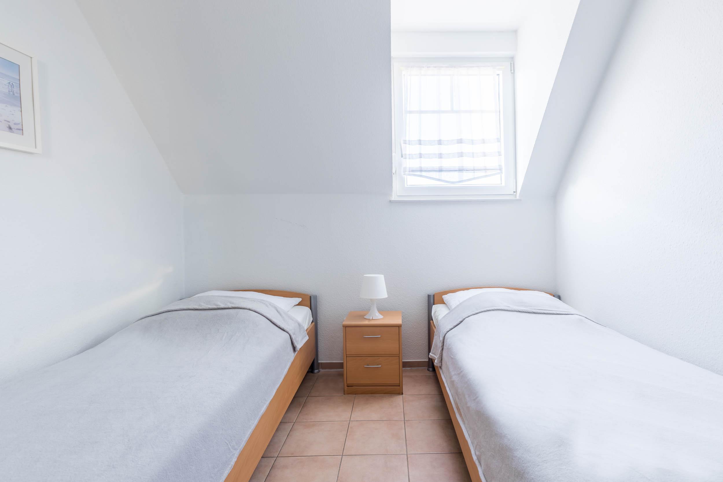 Ebenfalls finden Sie in der zweiten Wohnebene ein Schlafzimmer mit einem großen Doppelbett sowie ein Gäste-/ Kinderzimmer mit 2 Einzelbetten. Beide Zimmer verfügen über einen Kleiderschrank für Ihre Garderobe.