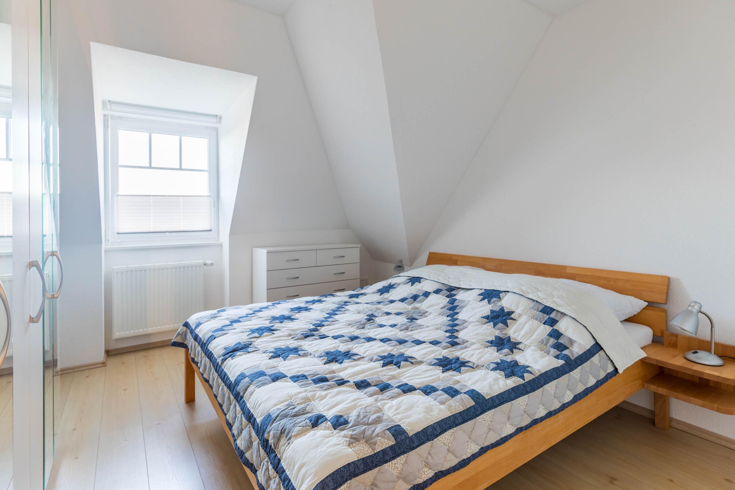 Im größeren Schlafzimmer erwartet Sie ein Doppelbett (180x200cm/ Höhe 55cm) und ein Kleiderschrank für die Urlaubsgarderobe. In diesem Zimmer gibt es zudem einen weiteren TV, verschiedene Bücher zum Lesen und einen Safe. Im kleineren Schlafzimmer befindet sich ein großzügiges Einzelbett (120x200cm/ Höhe 45cm) sowie ein Schreibtisch. Beide Schlafzimmer lassen sich hervorragend abdunkeln.
