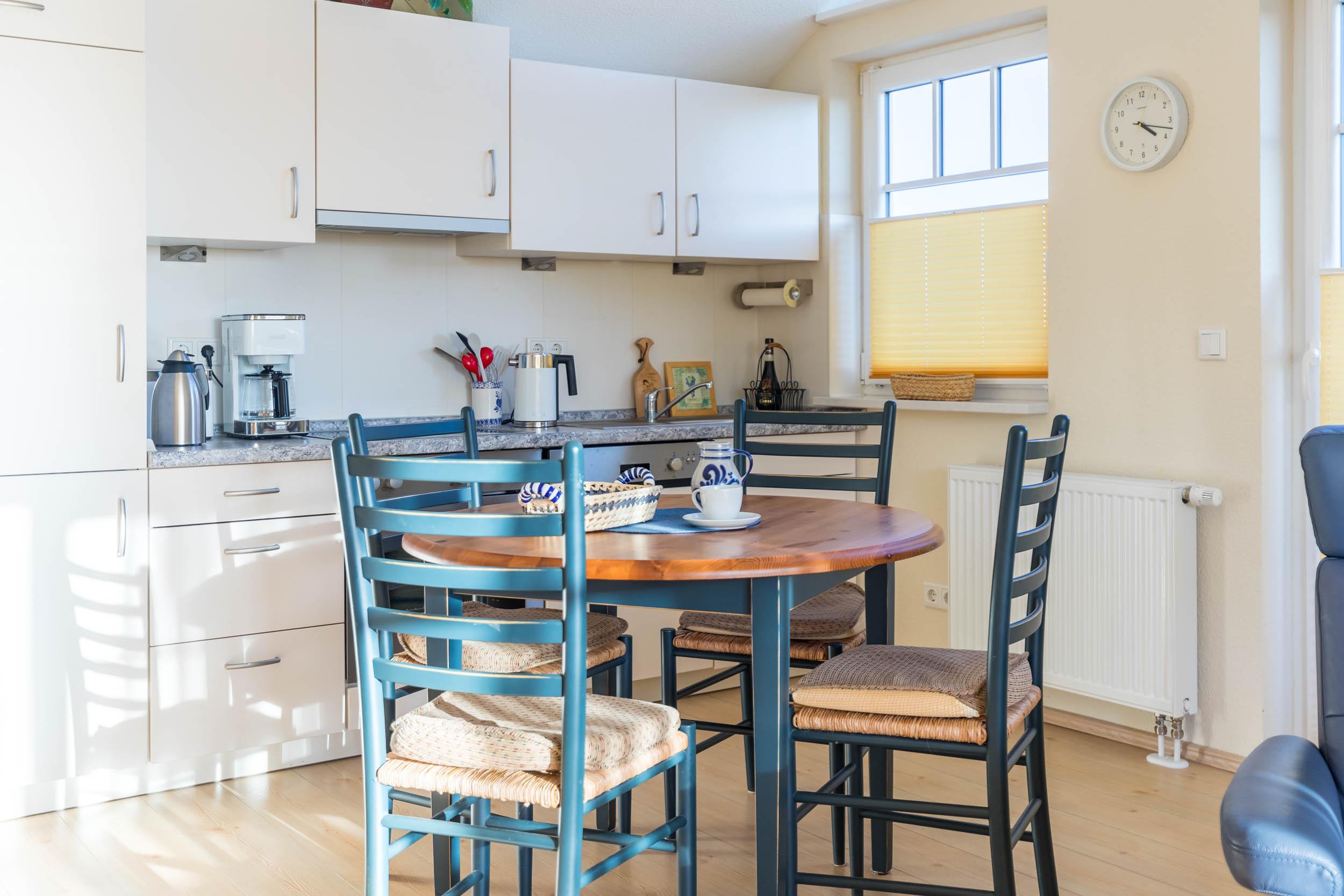 Die komfortable Ausstattung der offenen Küche lässt das Herz eines jeden Hobbykoches höher schlagen. Sämtliche Geräte wie Backofen, Herd, Geschirrspüler, Gefrierfach im Kühlschrank uvm. stehen für eine sorglose Selbstverpflegung bereit.