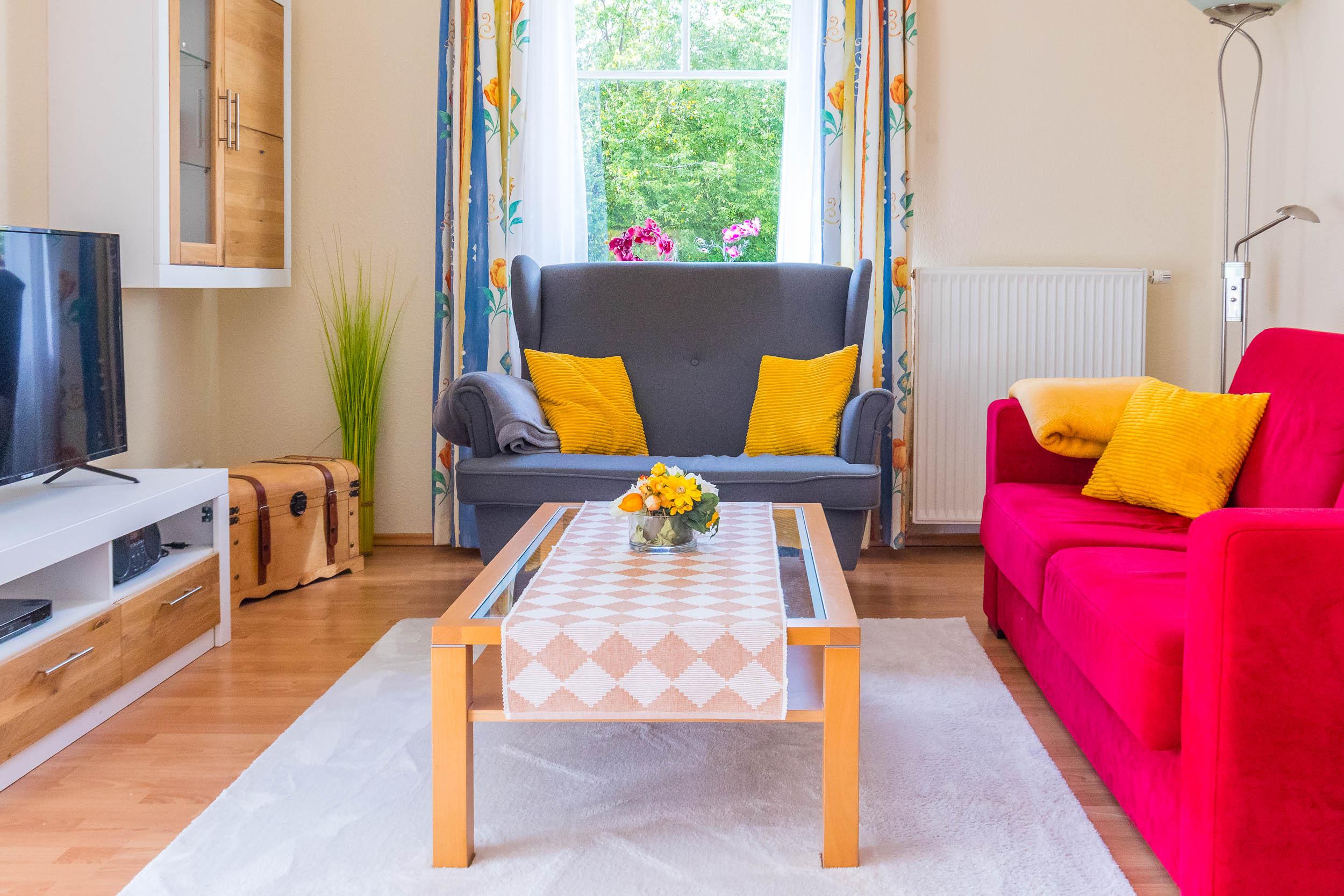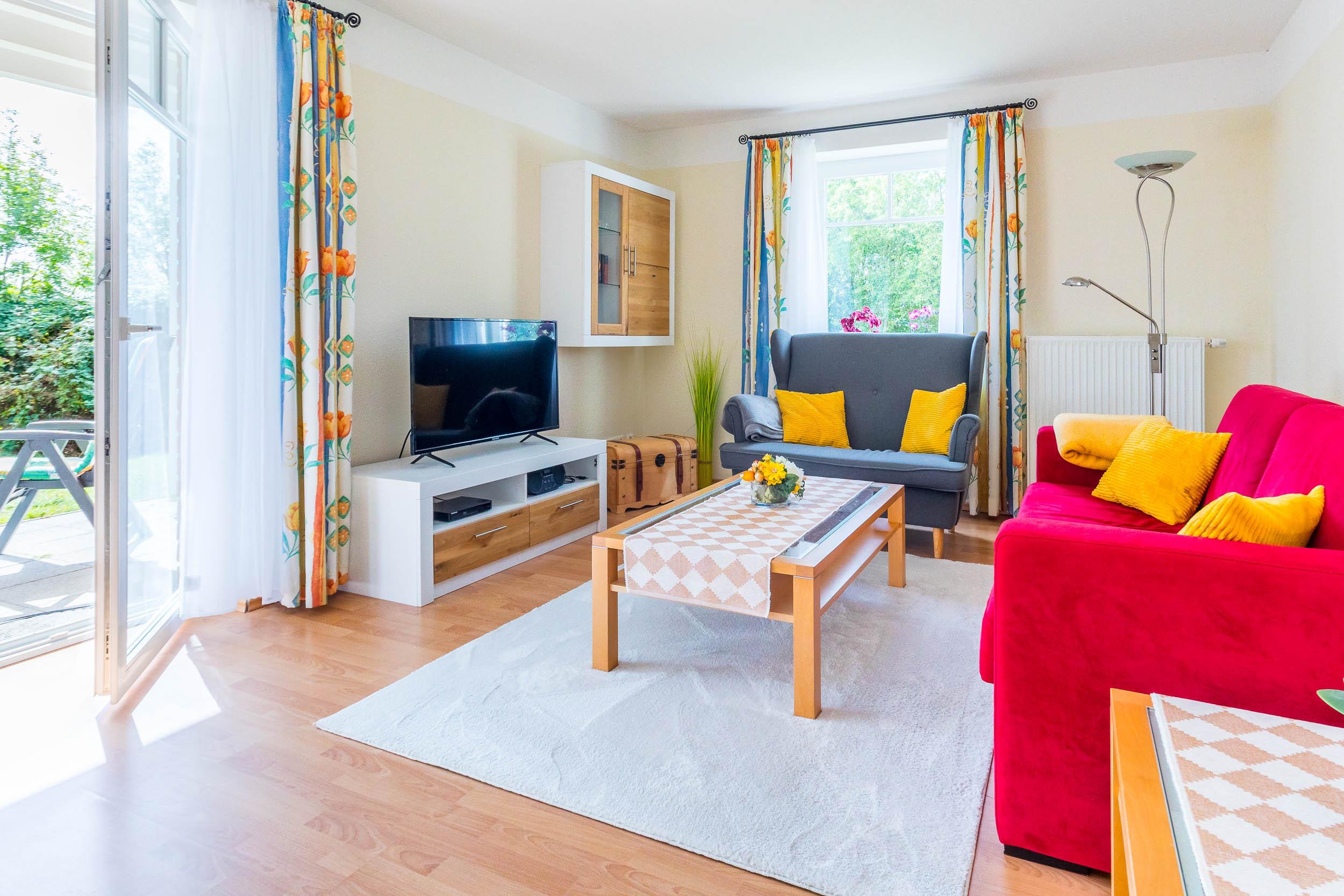 Die gemütliche 2-Zimmer-Ferienwohnung befindet sich im Erdgeschoss und bietet auf etwa 52qm Wohnfläche eine komfortable Ausstattung für bis zu 4 Personen.