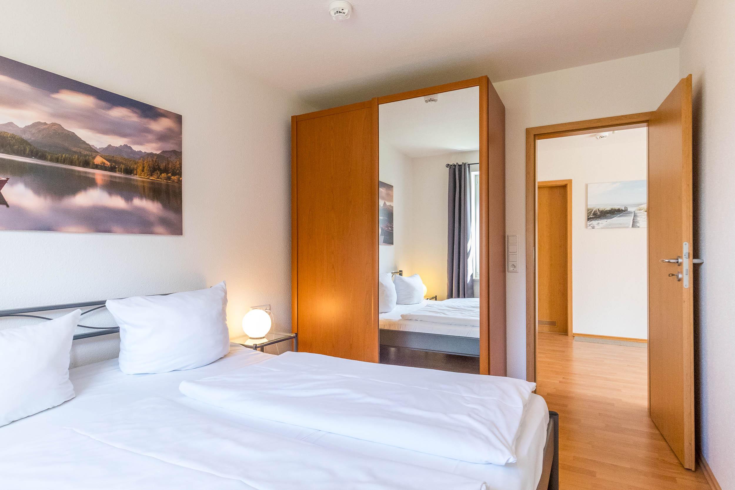 Im Schlafzimmer finden Sie ein bequemes Doppelbett und einen Kleiderschrank.