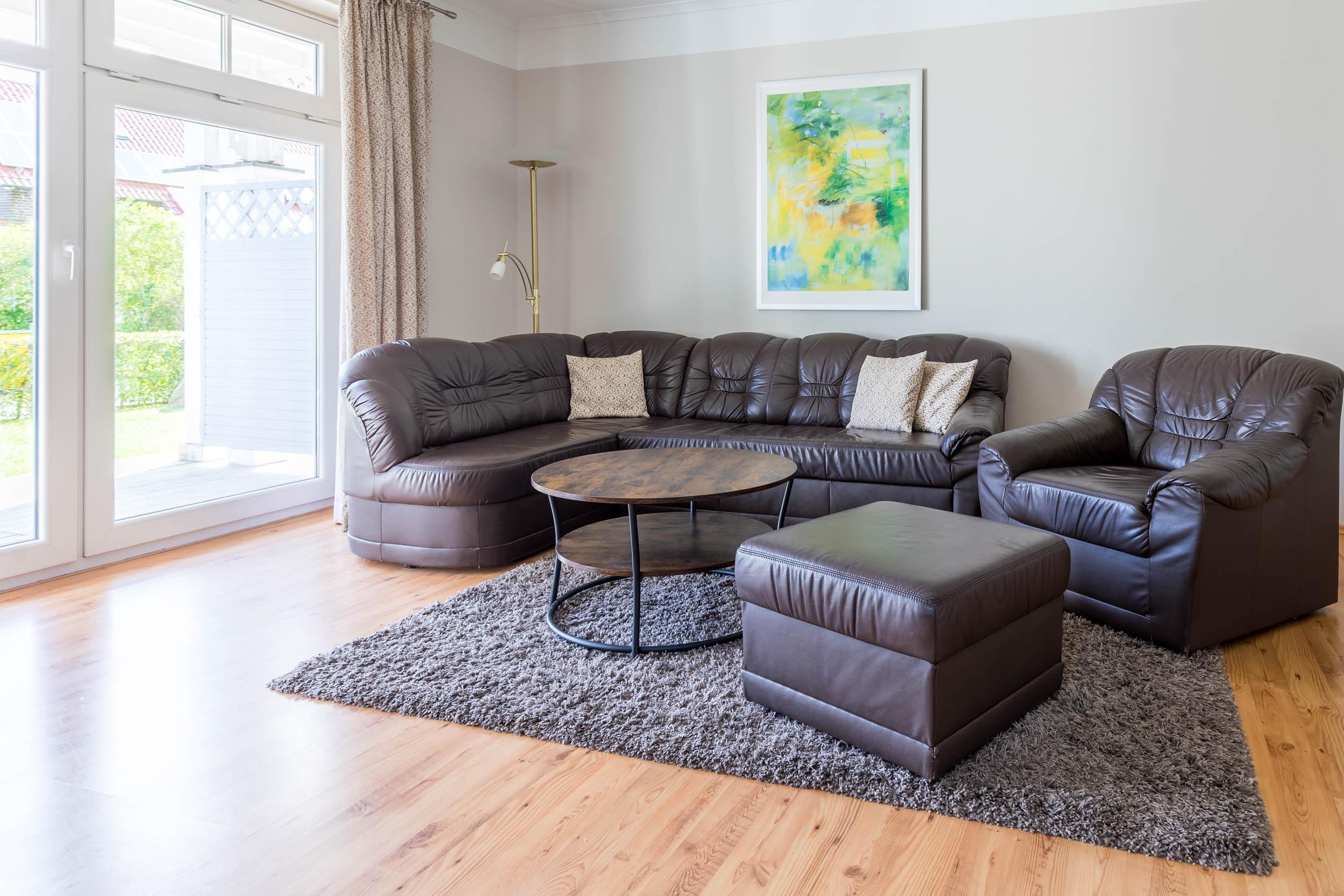 Im komfortablen Wohnbereich finden Sie neben einer großen Couchgarnitur einen Flatscreen-TV, einen DVD-Player und ein Radio.