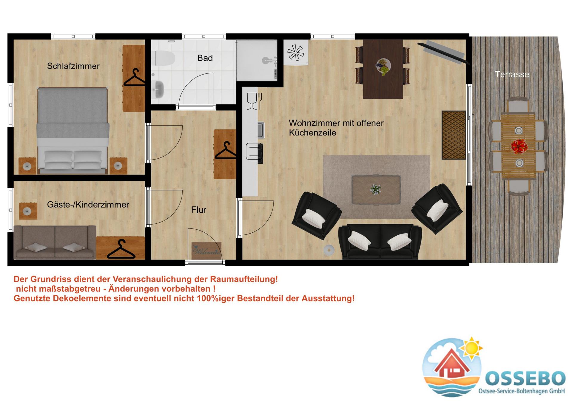 Die moderne 3-Zimmer-Wohnung im Erdgeschoss bietet auf rund 52qm Wohnfläche eine familienfreundliche Ausstattung für 3 Gäste.