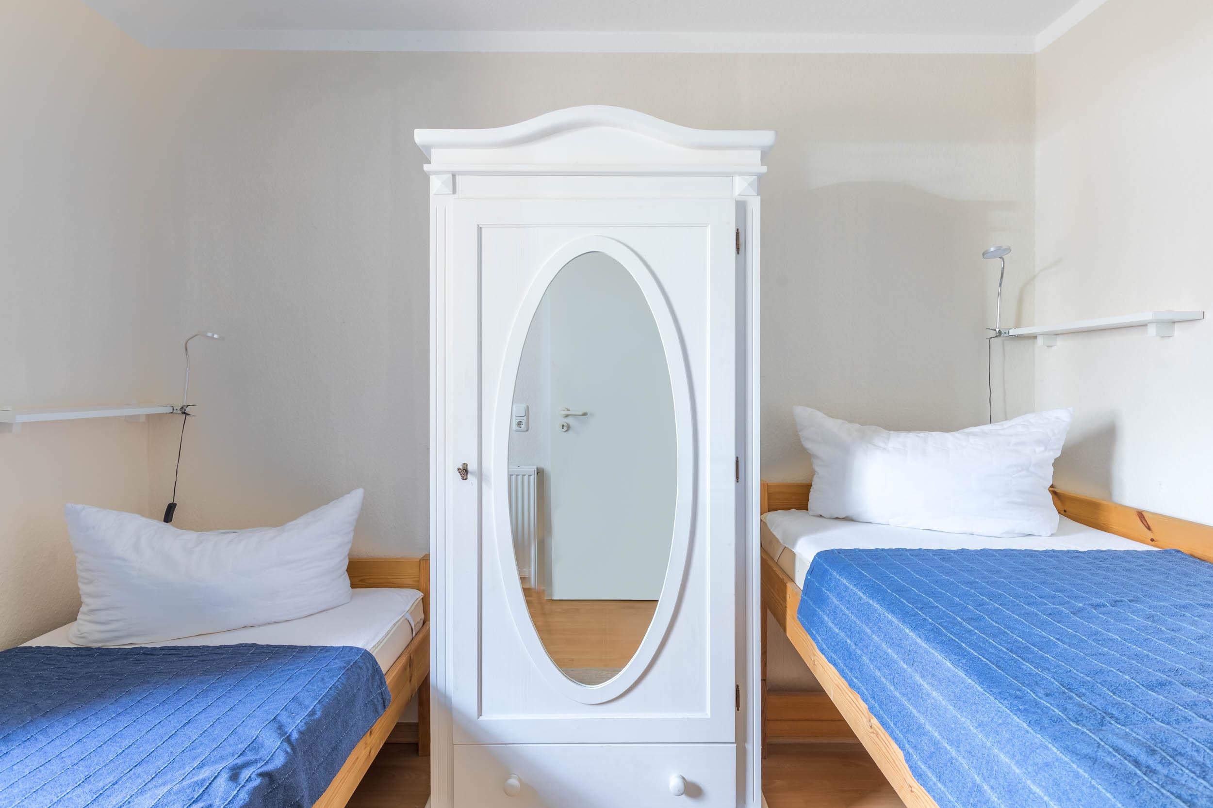 Weiterhin befindet sich im Erdgeschoss das Gäste-/ Kinderzimmer mit 2 Einzelbetten und einem kleinen Kleiderschrank.
