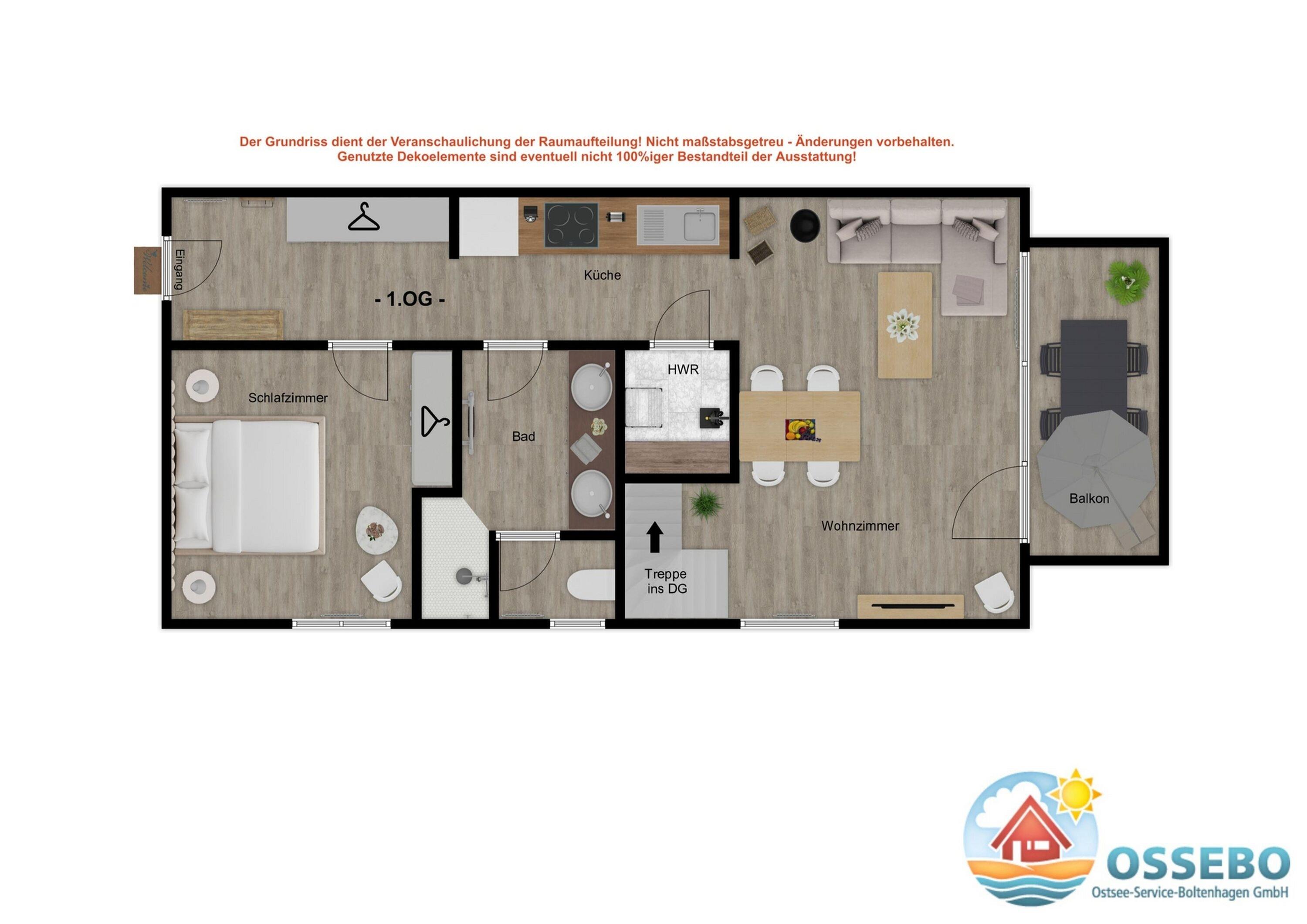 Sie wurde umfassend renoviert und ist Teil eines Appartementhauses in der Ferienanlage Papillon im Ostseebad Boltenhagen. Die liebevolle Gestaltung und hochwertige Einrichtung erfolgten im Landhausstil bzw. dem Skandinavischen Stil, was der Wohnung ein behagliches Flair verleiht.