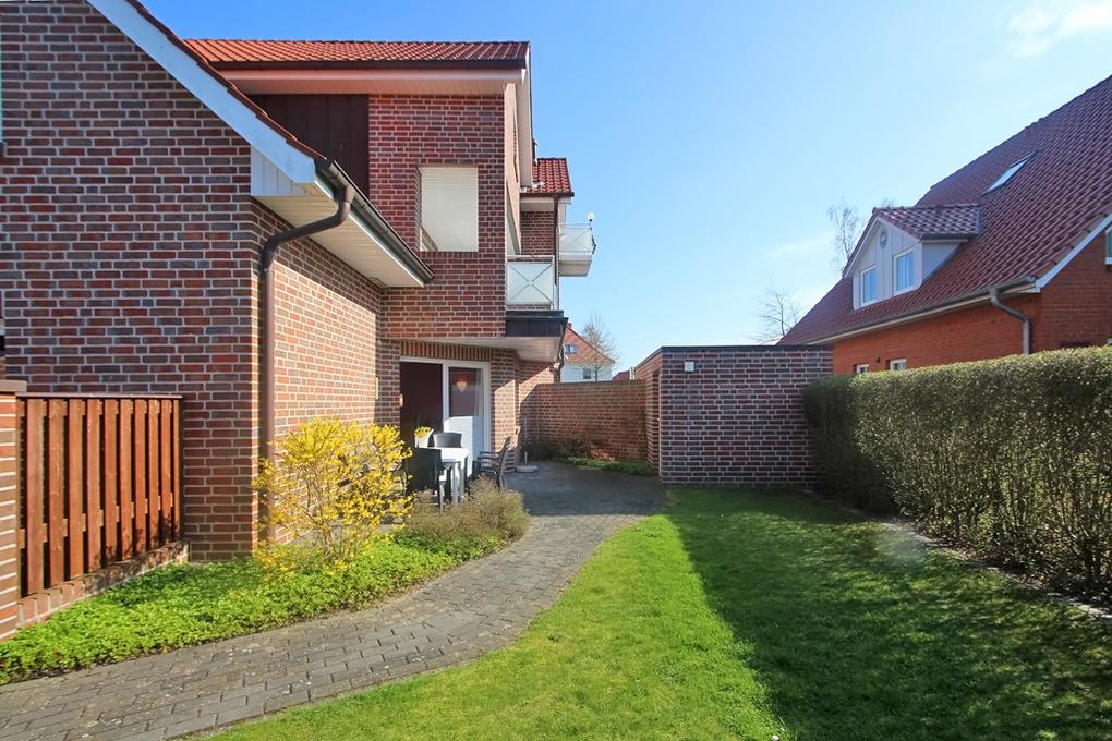 Am Haus befindet sich ein wohnungseigenes, abschließbares Abstellhäuschen Nr. 2. Hier können Räder [&] Co. sicher untergebracht werden. Die Terrasse ist teilweise eingezäunt (mit Zaun und Hecke).