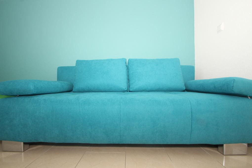 Das Schlafzimmer ist mit einem bequemen Doppelbett (180x200cm), großem Kleiderschrank und weiterem Flatcreen-TV eingerichtet. Ein Reisebettchen würde hier auch noch ein Plätzchen finden. Das Kinderzimmer bietet zwei Einzelbetten (je 90x200cm), eine zusätzliche Couch (Liegefläche ausgeklappt 140x200cm) und ebenfalls einen kleineren Kleiderschrank (mit Ablagefächer).