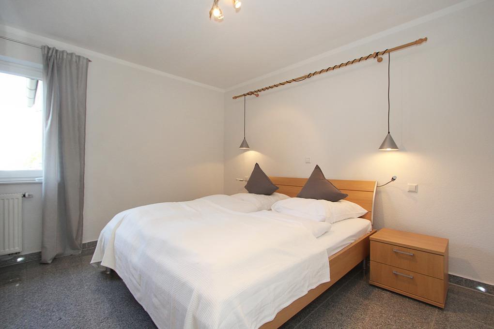 Das Schlafzimmer bietet ein Doppelbett (180x200cm), einen großen Kleiderschrank und Platz für das Reisebettchen. Im Gäste-/ Kinderzimmer befinden sich 2 Einzelbetten (je 90x200cm) und ebenfalls ein Kleiderschrank.