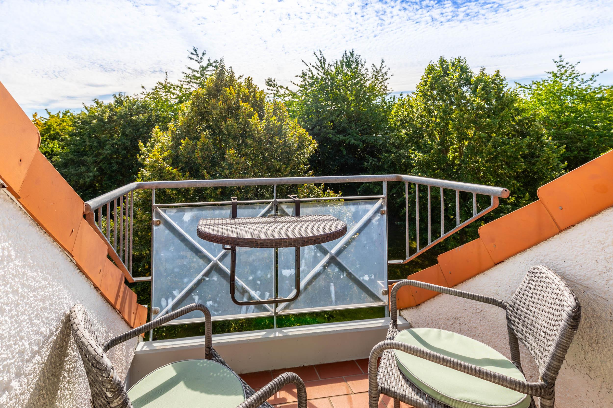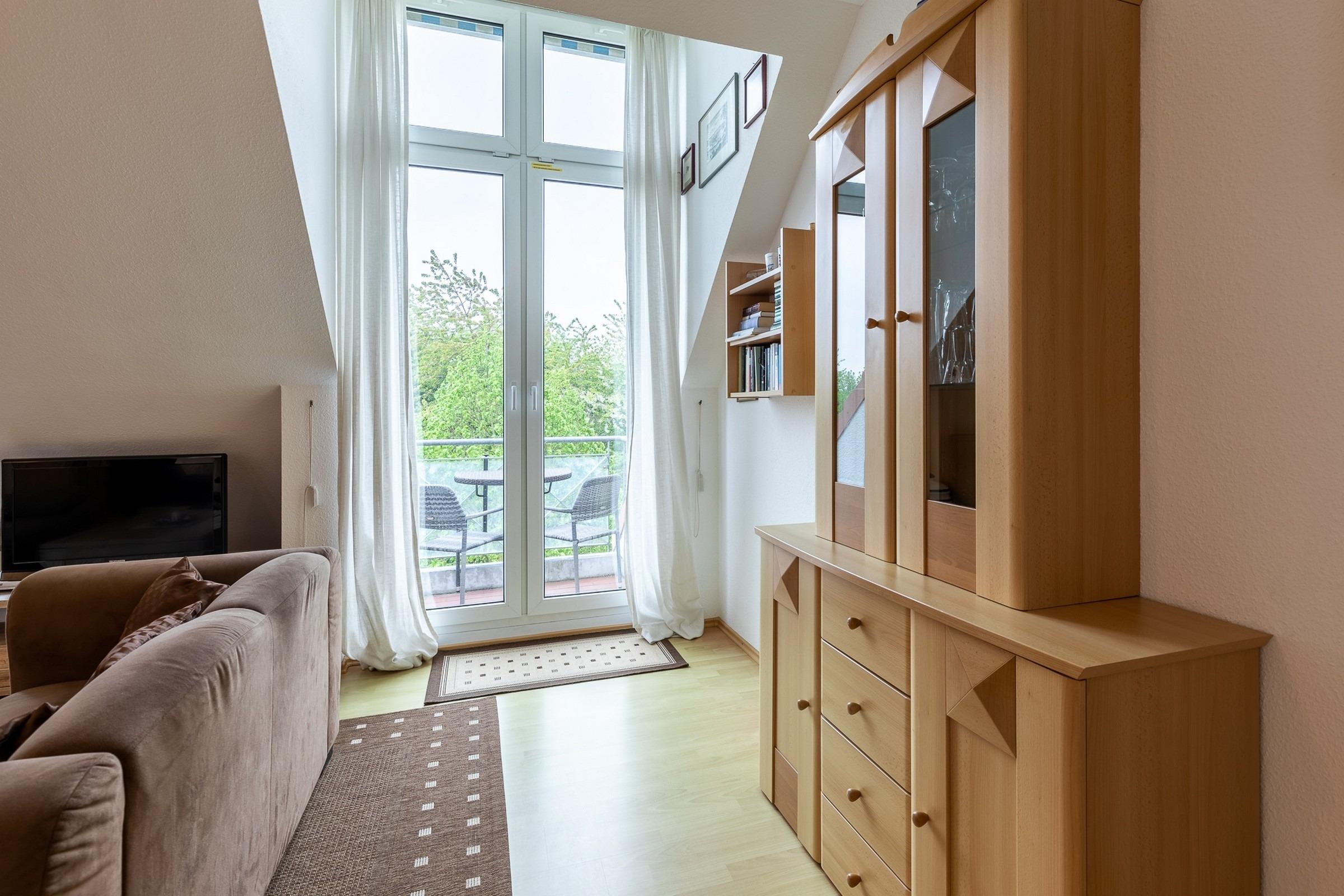 Vom Wohnbereich aus können Sie auf den möblierten Südost-Balkon gelangen.
