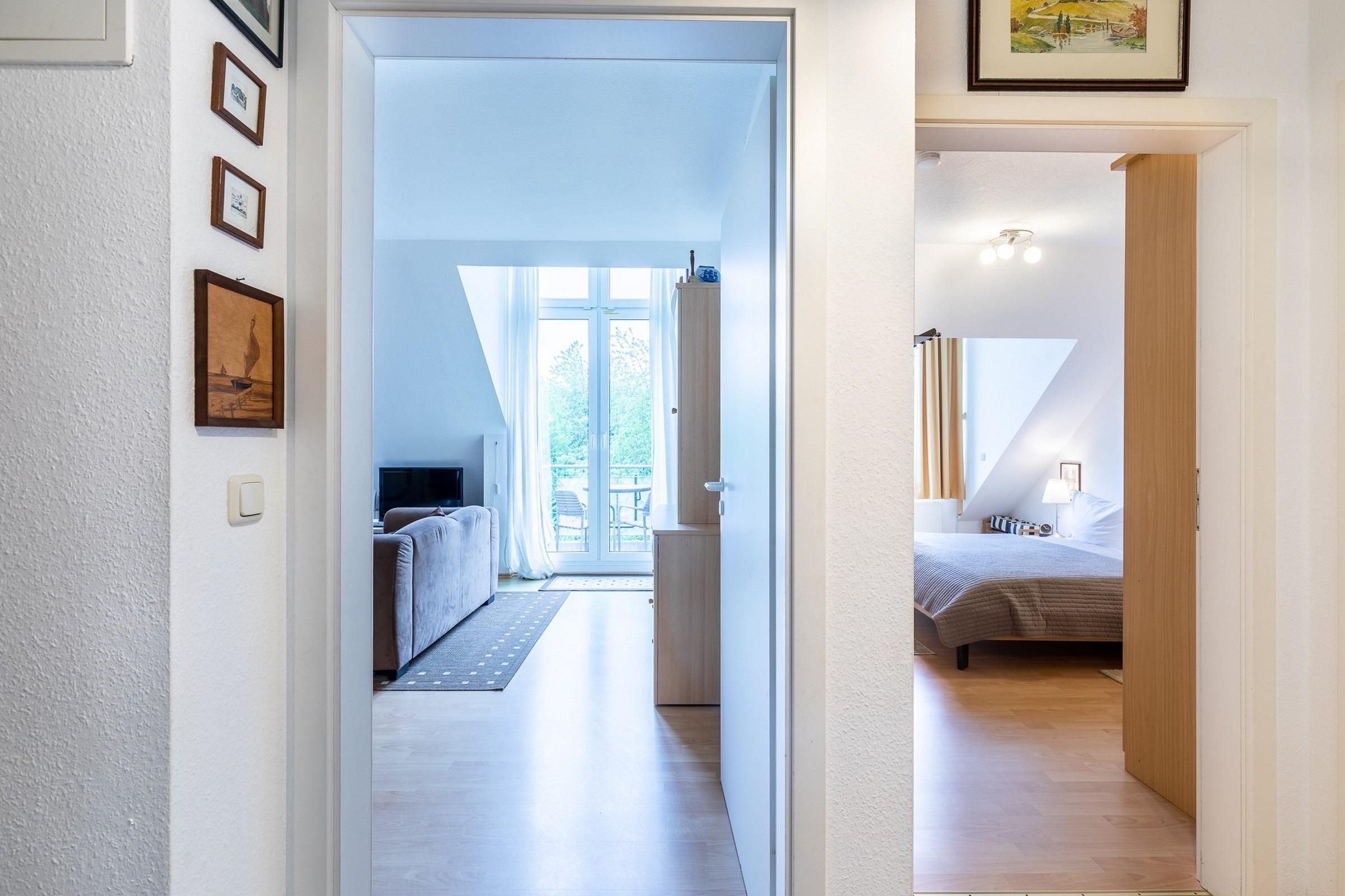 Die 3-Zimmer-Wohnung im 2. Obergeschoss bietet auf 61qm Wohnfläche eine rundum komfortable Ausstattung für 4 bis 6 Personen.