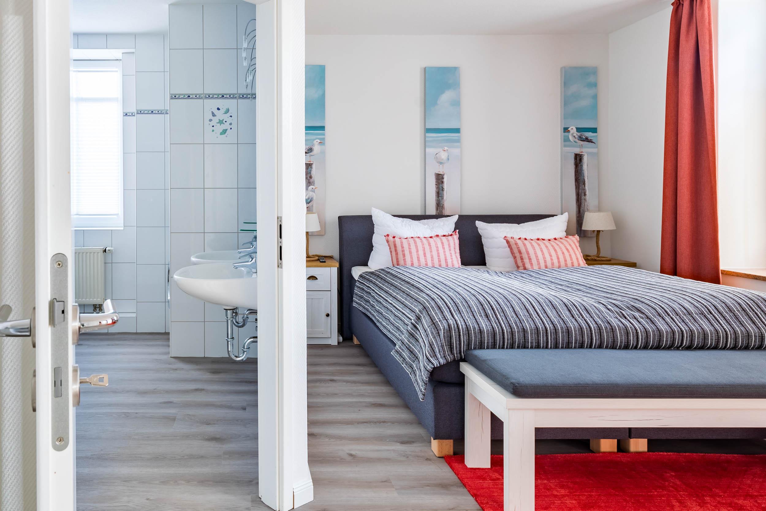 Die moderne und lichtdurchflutete Wohnung im 1. OG (110 qm) ist perfekt für einen erholsamen und komfortablen Strandurlaub in bester Lage direkt am Meer.