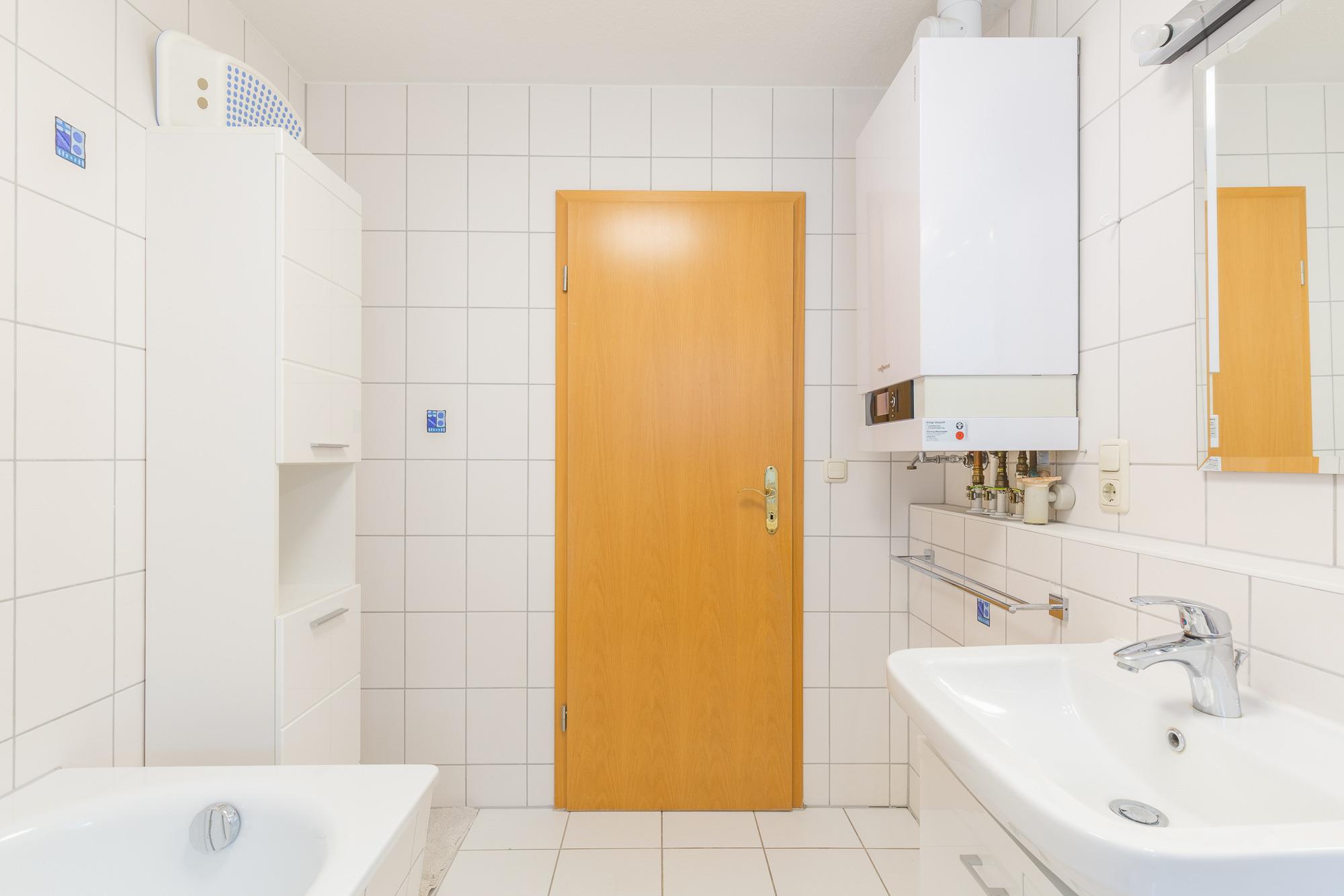 Vom Wohnzimmer aus gelangen Sie auf die begrünte, kleine Terrasse. Die vorhandene Hecke bietet Sichtschutz und Privatsphäre für das Familienfrühstück auf der Terrasse. Auf der andern Seite befindet sich der Außenstellplatz. Ein schöner Strandkorb auf der Terrasse rundet das Angebot ab.