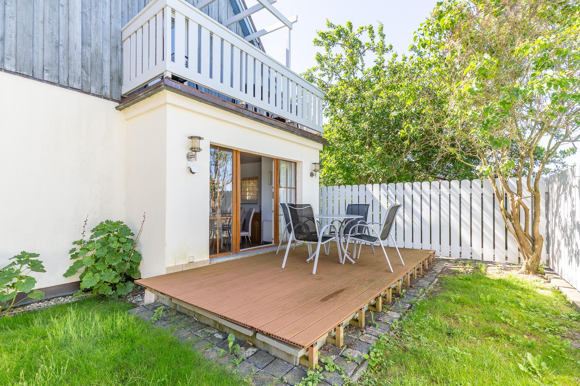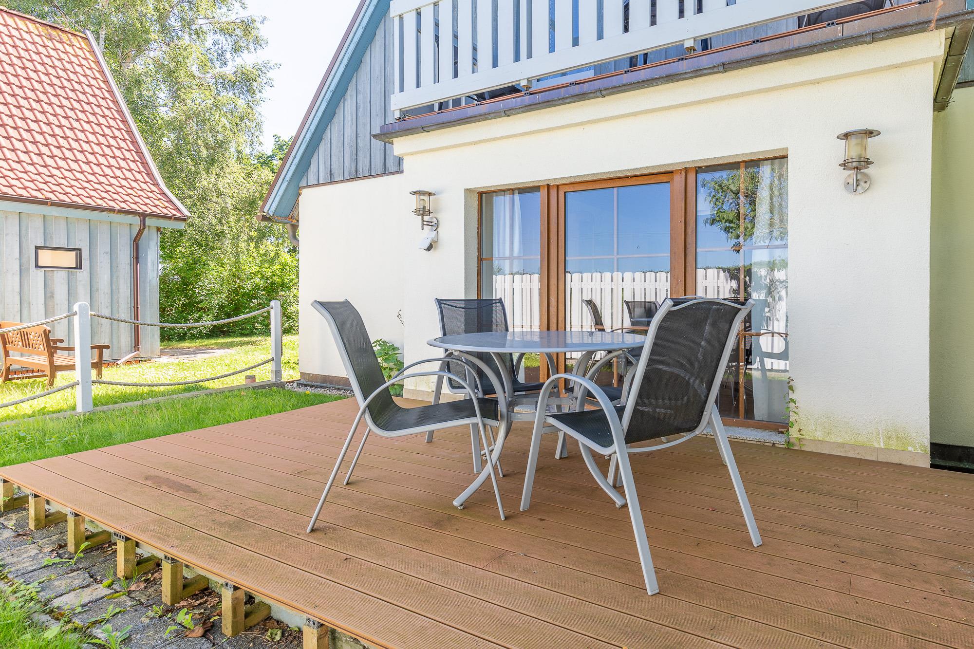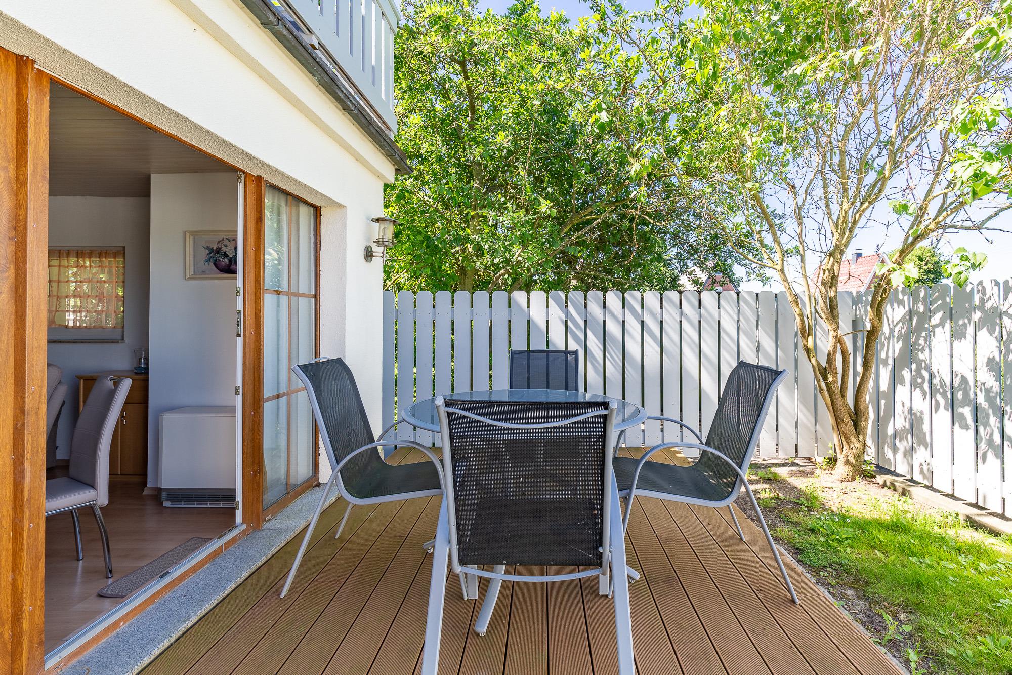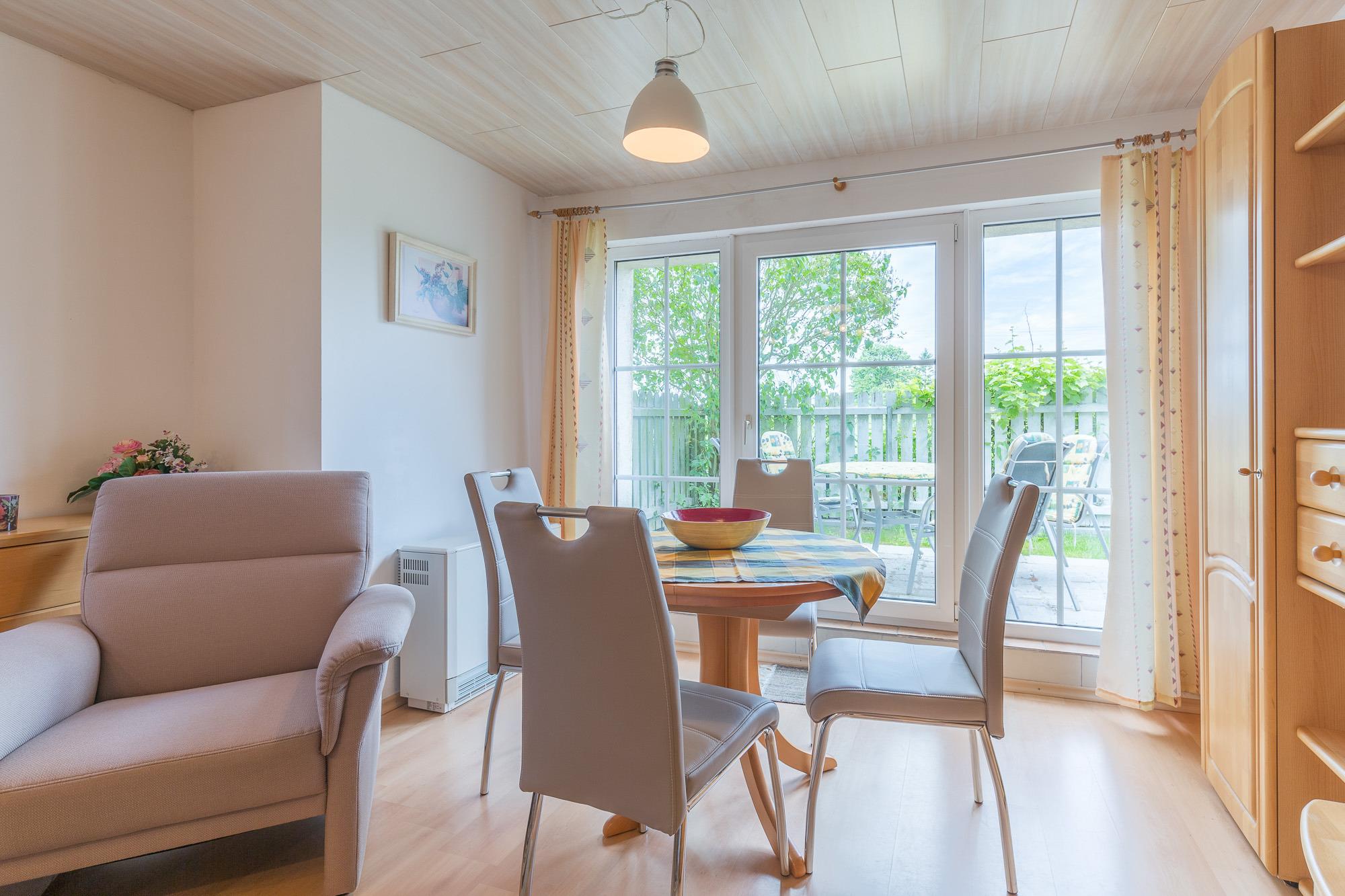 Die geräumige Ferienwohnung Nr. 1 ist eine 3-Zimmer-Wohnung im Erdgeschoss und bietet Platz für max. 4 Personen. Im lichtdurchfluteten Wohnraum befindet sich eine bequeme Sitzecke, die auch abends zum Entspannen einlädt. Für genügend Abwechselung sorgen der Flatscreen und das Radio. Der sorgfältig eingerichtete Wohn- und Essbereich sowie das Wannenbad tragen zusätzlich zur Erholung bei. Eine schöne Terrasse schließt sich am Wohnbereich an. Hier laden Gartenmöbel zum Verweilen ein.